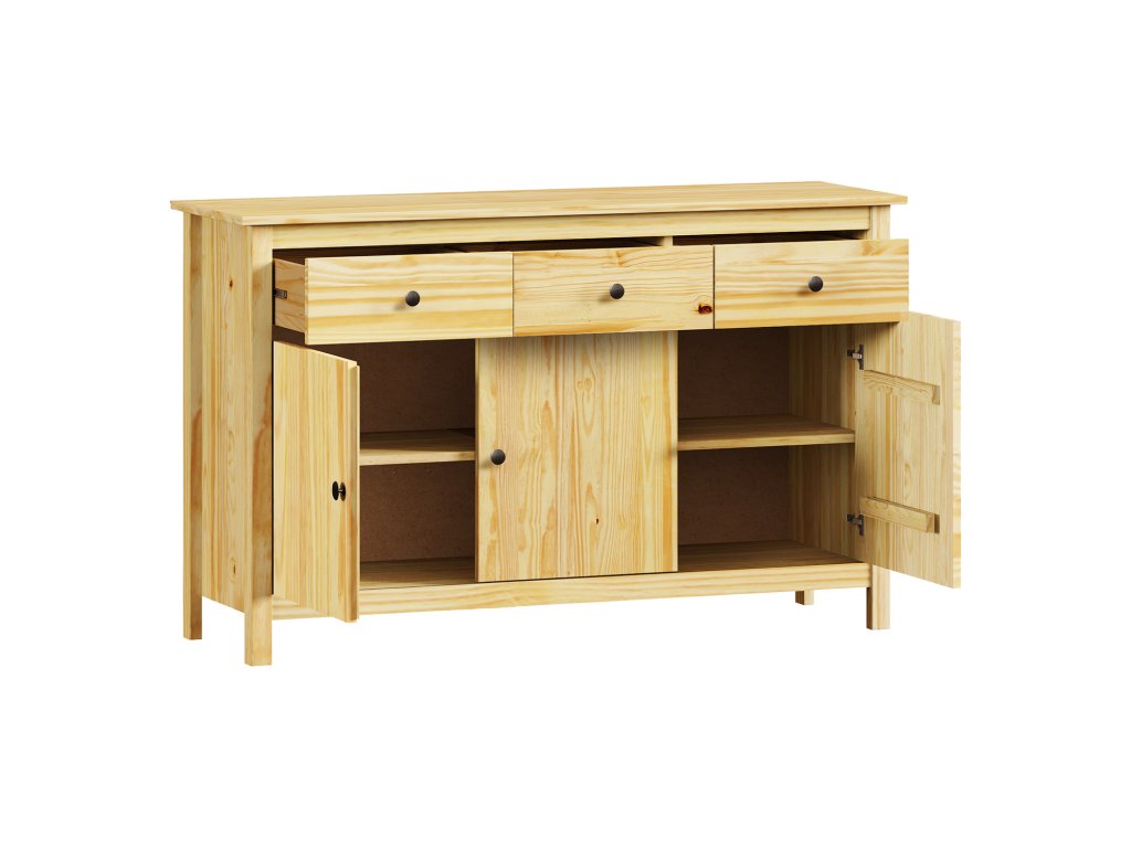 Příborník TORINO 8062K – masivní borovice, 3 dvířka a 3 zásuvkyStylový a praktický příborník TORINO 8062K je vyroben z kvalitní masivní borovice s lakovanou povrchovou úpravou. Nabízí tři dvířka a tři zásuvky s kovovými pojezdy, které zajišťují plynulý chod. Kovové úchytky dodávají nábytku elegantní vzhled. Ideální do jídelny nebo kuchyně. Skvěle se doplňuje s nástavcem TORINO 8063K.