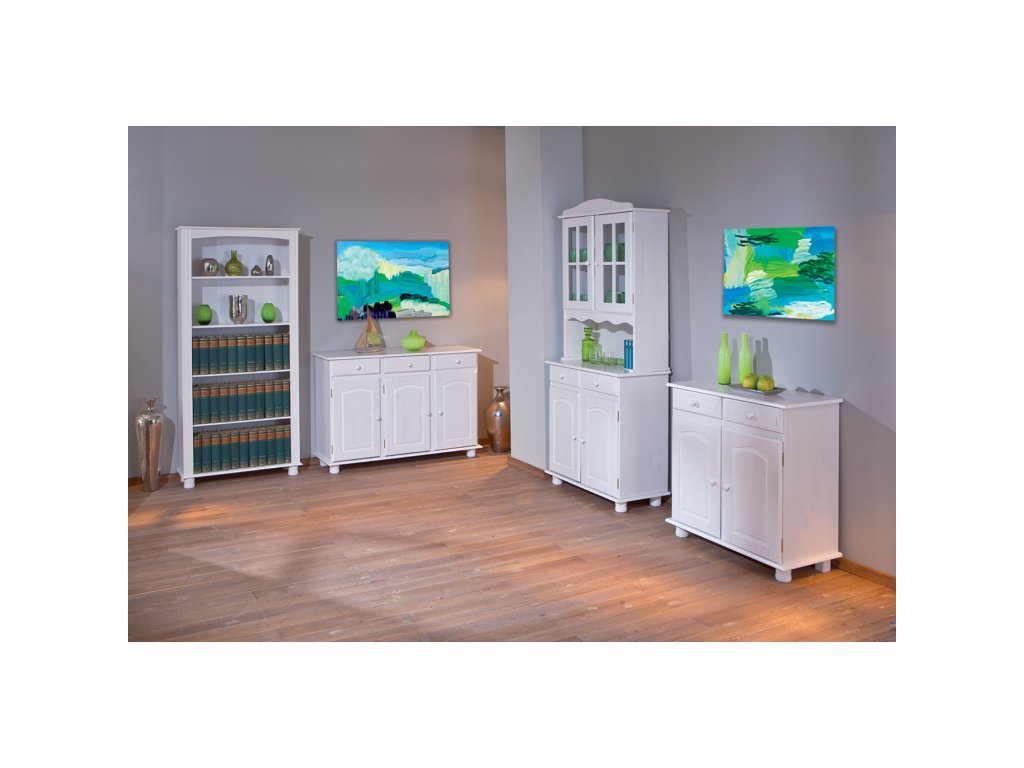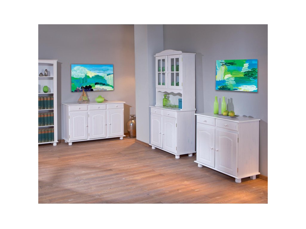materiál masiv borovice, barevné provedení bílý lak, v horní části 2 prosklená dvířka ve spodní části 2 plná dvířka, 2 zásuvky s kovovými pojezdy hloubka horní části 32 cm sestava příborníku LOVI a nástavce LOVI PAMINA, LOVI, ABACO, LIVIO, ALICANTE, VALENCIA, TOSCANA, SIENADoplňkové parametry