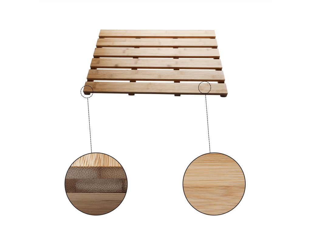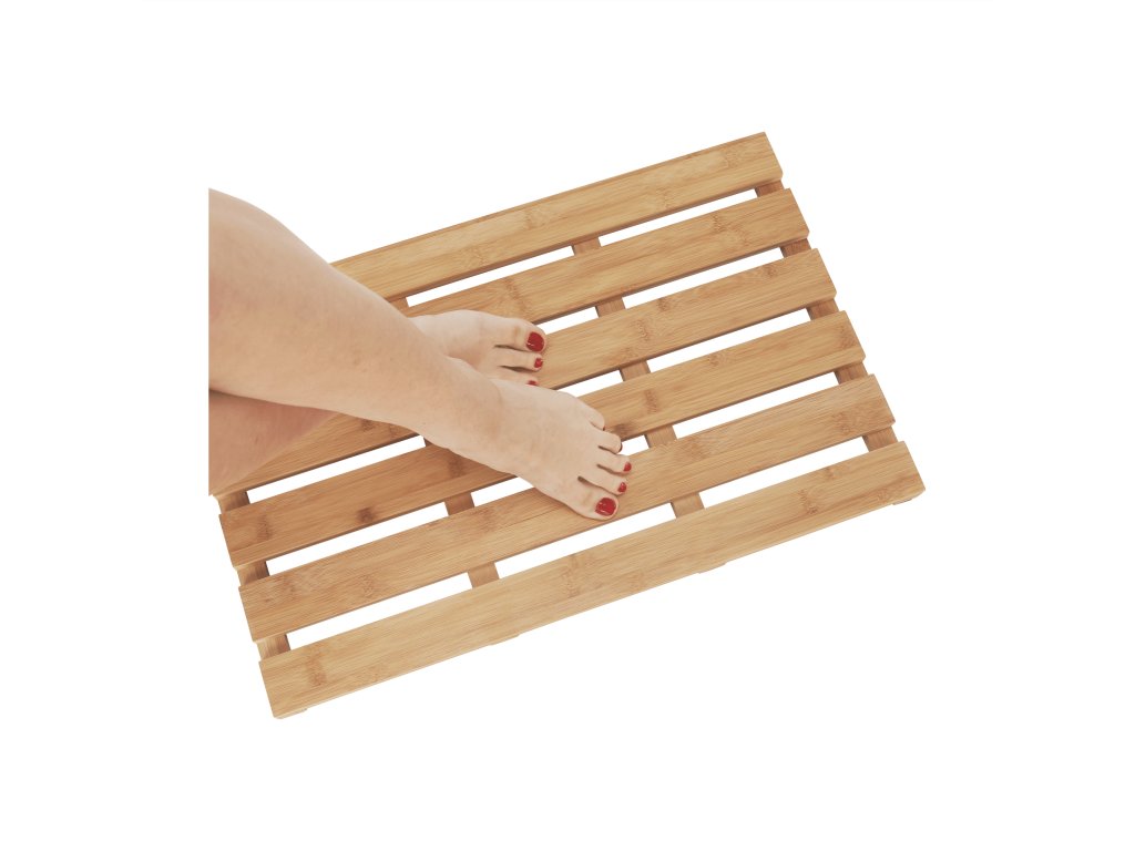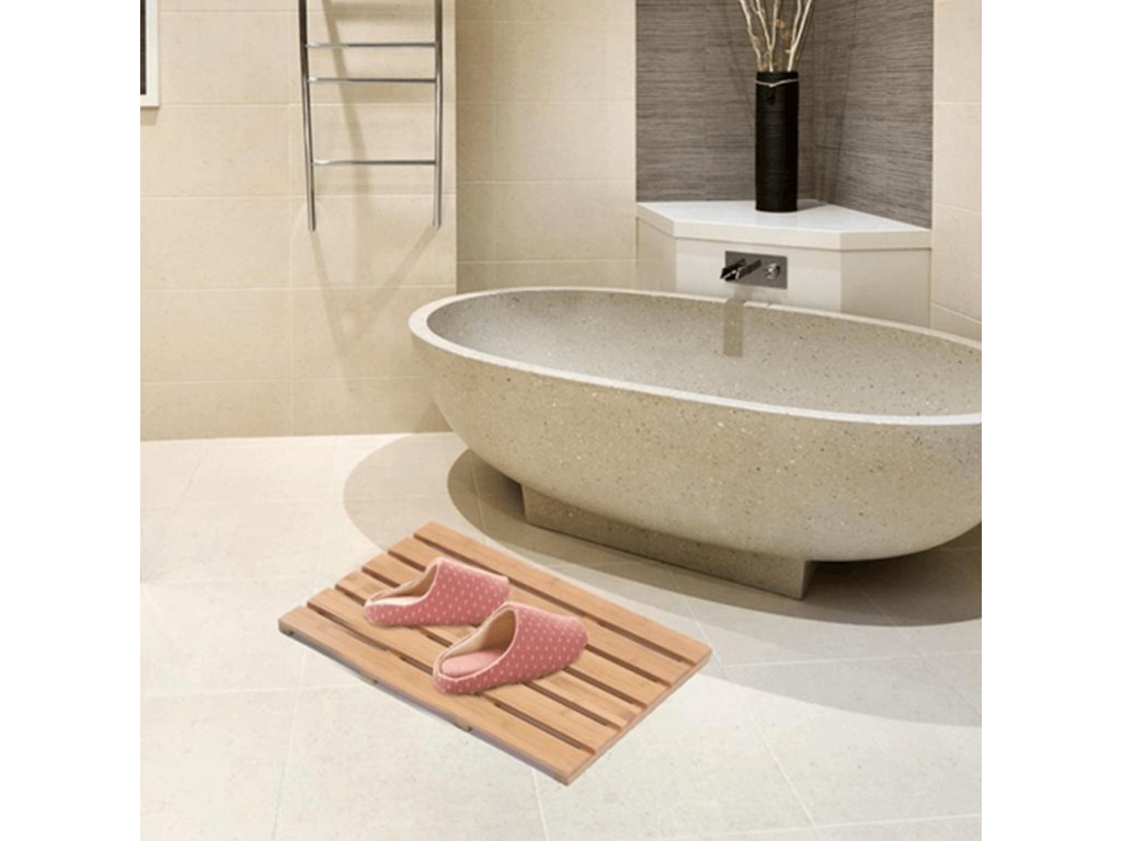 Koupelnová předložka KLERA z lakovaného bambusu je elegantní a funkční:- Rozměry: 59×38×3 cm