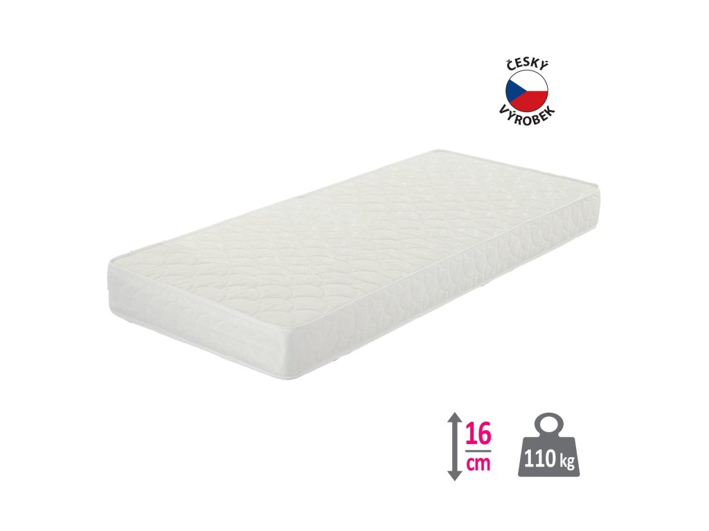 Pružinové jádro, prodyšná separační vrstva a pěnový plášť pevný potah, zimní / letní strana, doporučená nosnost do 110 kg.Doplňkové parametry