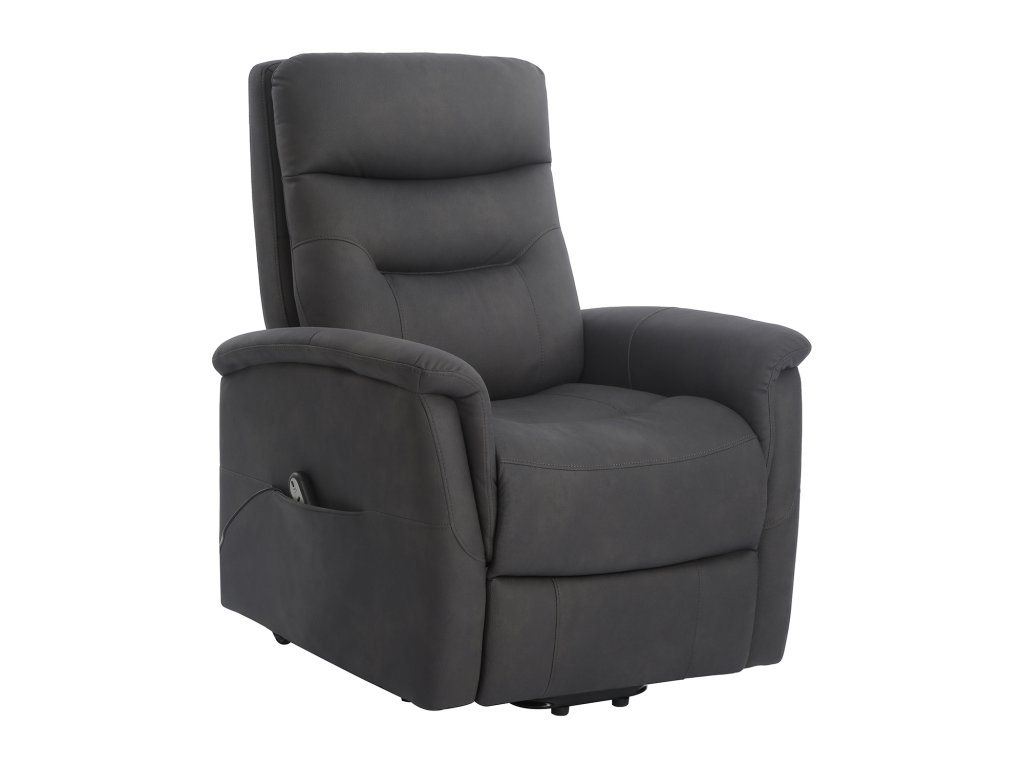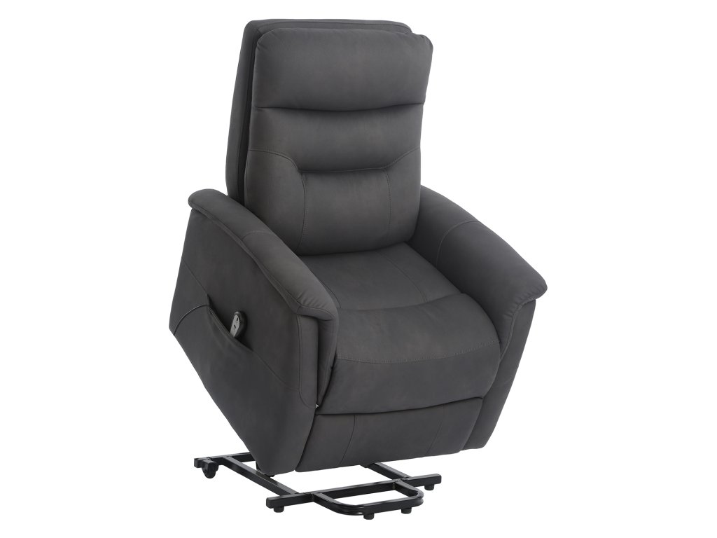 Potah kůže – imitace, barevné provedení šedá, plynule polohovatelné s elektrickým ovládáním včetně zvednutí křesla pro snadnější vstávání, výška sedu 49 cm, šířka sedu 53 cm, hloubka sedu 51 cm, šířka opěrky 59 cm, výška opěrky 62 cm.Doplňkové parametry