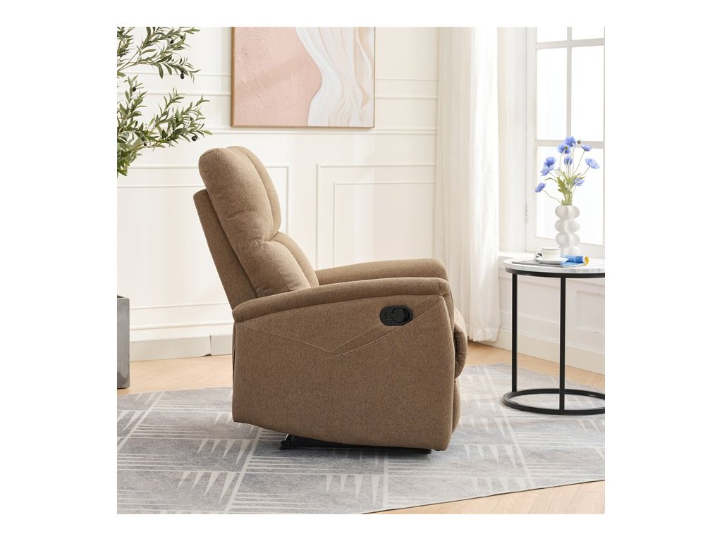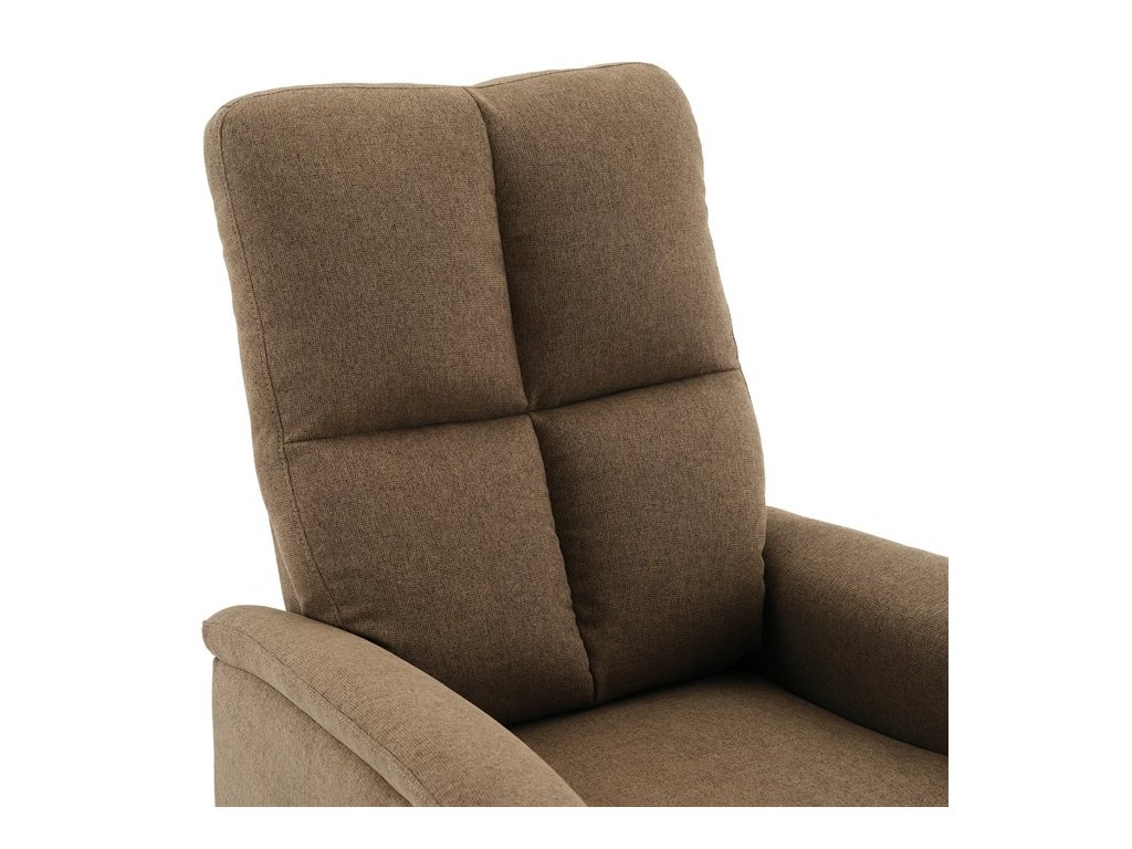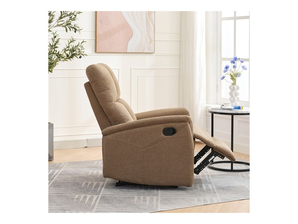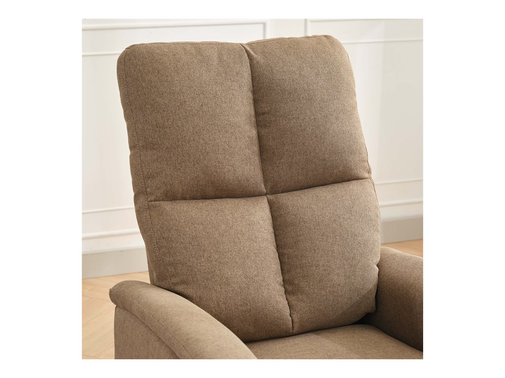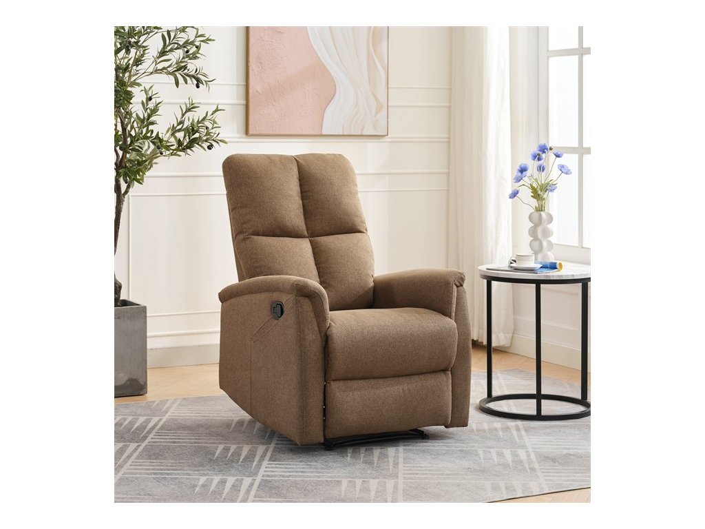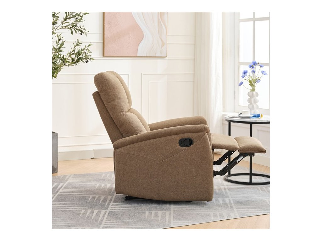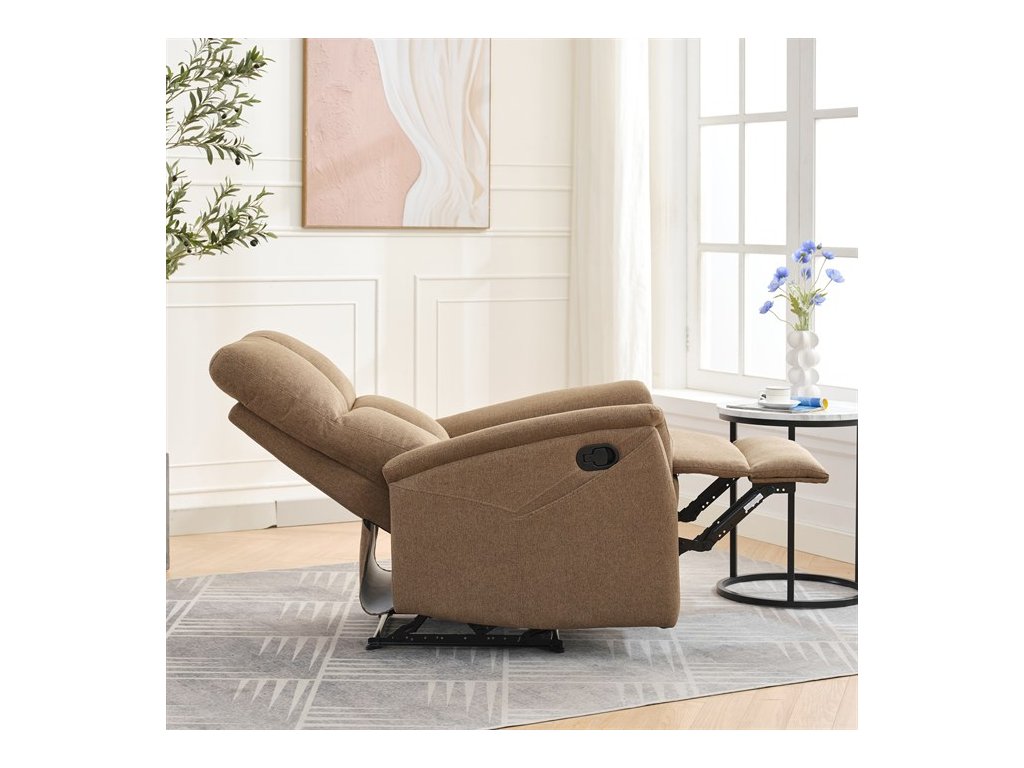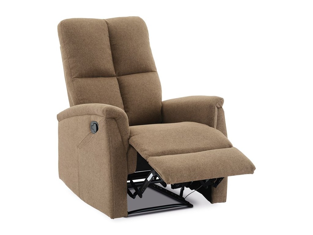Polohovací křeslo, hnědé barvy, s manuálním ovládáním. Toto komfortní křeslo je vybaveno postranní pákou, která umožňuje snadné nastavení sklonu zadní opěrky a zvednutí podnožky.Na boku křesla je praktická kapsa pro uložení drobností, jako jsou časopisy nebo dálkový ovladač. Křeslo je navrženo pro maximální pohodlí a ergonomii, poskytuje vynikající podporu zad a relaxaci.