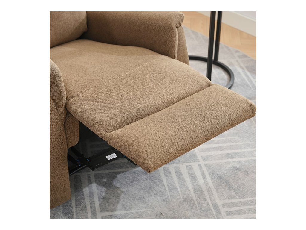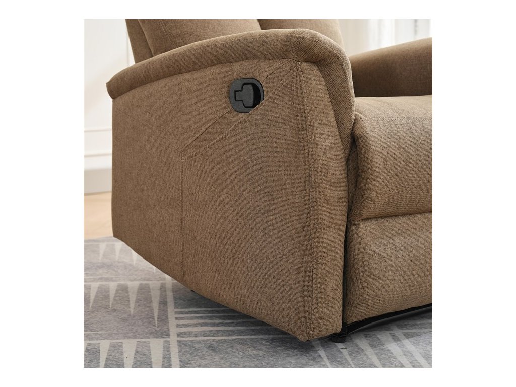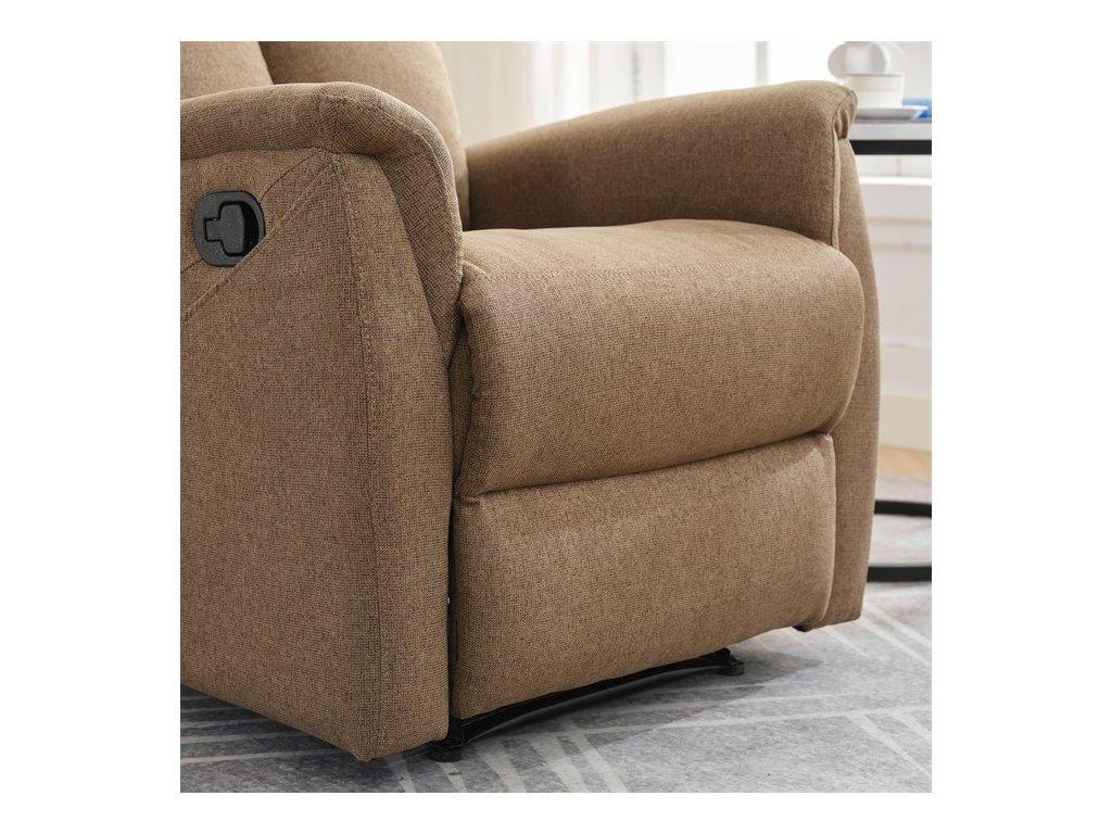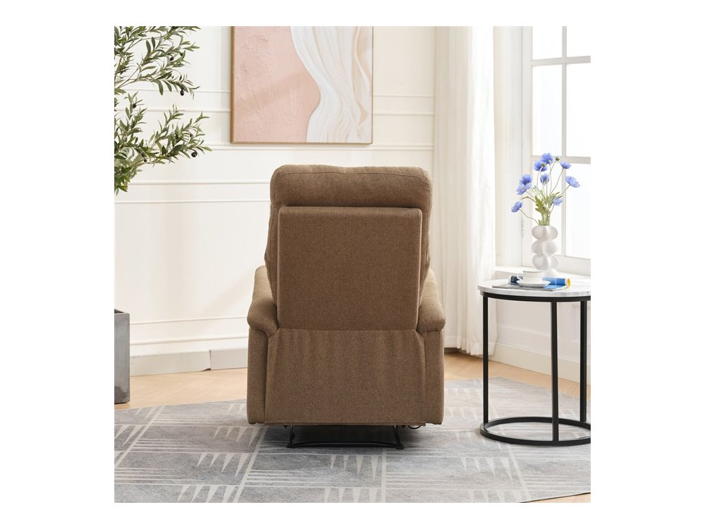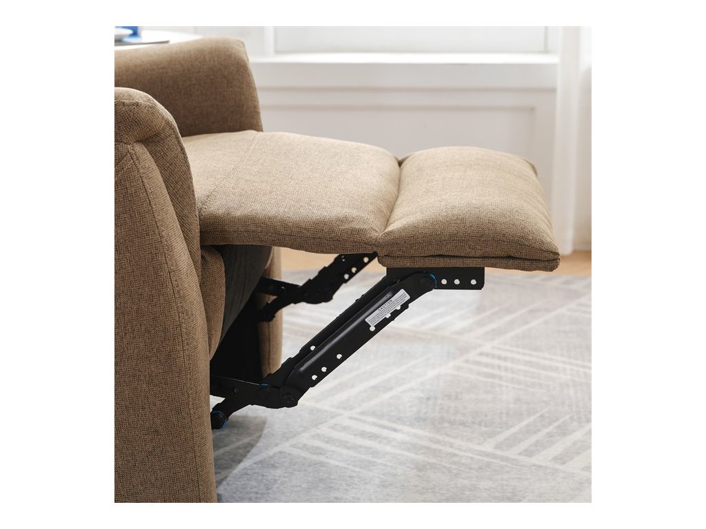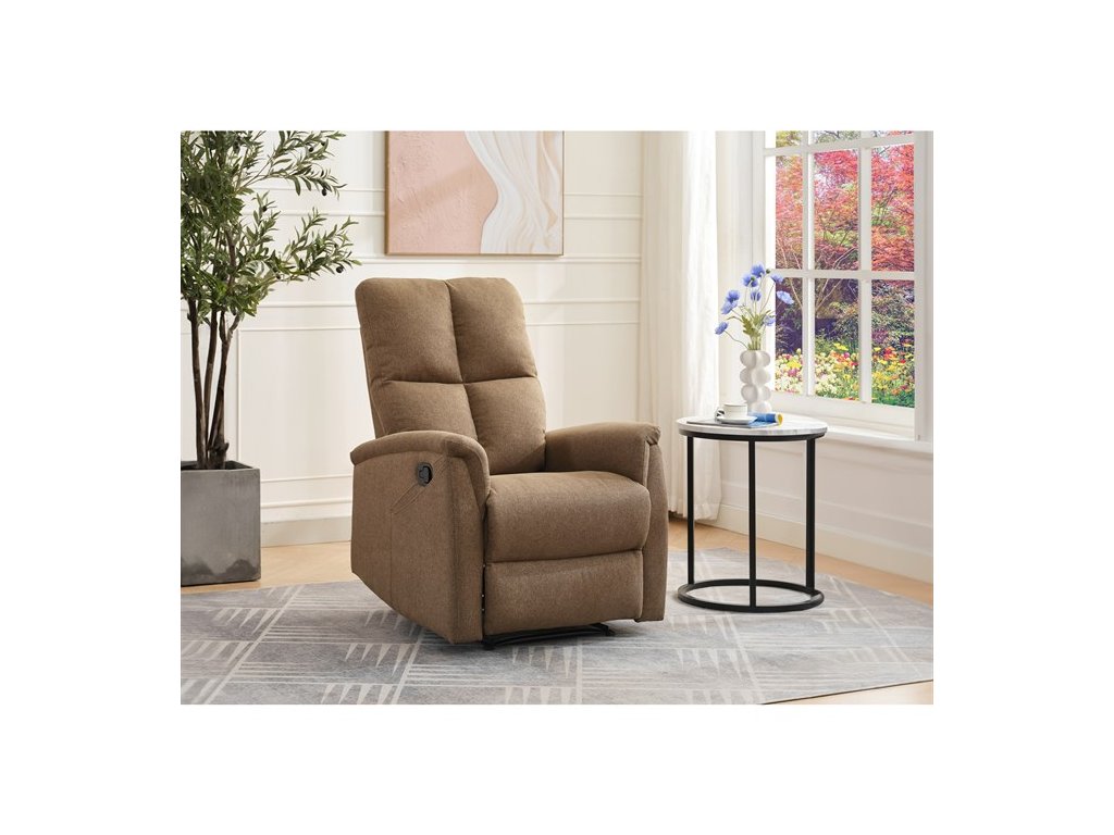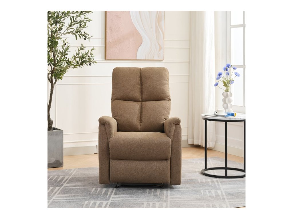Polohovací křeslo, hnědé barvy, s manuálním ovládáním. Toto komfortní křeslo je vybaveno postranní pákou, která umožňuje snadné nastavení sklonu zadní opěrky a zvednutí podnožky.Na boku křesla je praktická kapsa pro uložení drobností, jako jsou časopisy nebo dálkový ovladač. Křeslo je navrženo pro maximální pohodlí a ergonomii, poskytuje vynikající podporu zad a relaxaci.