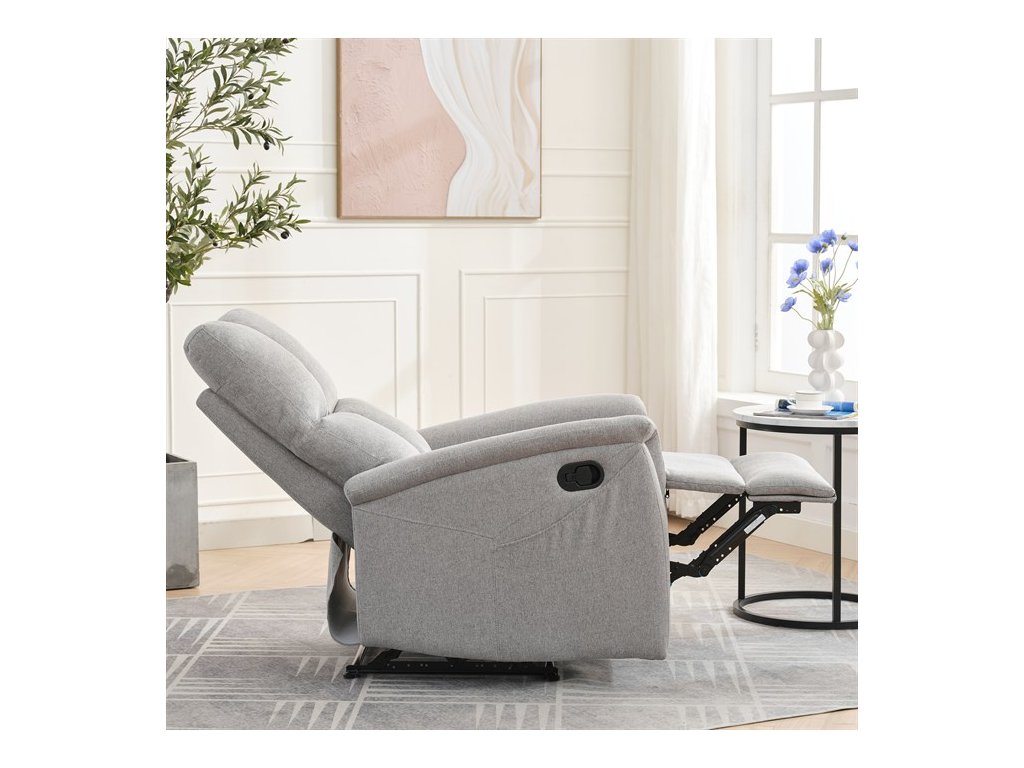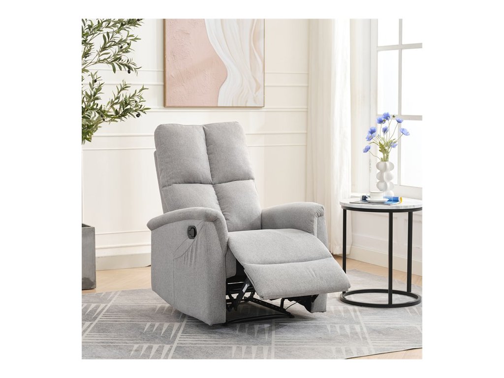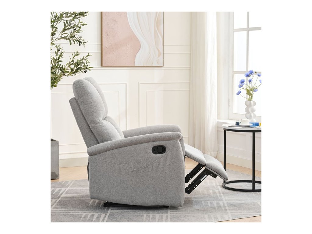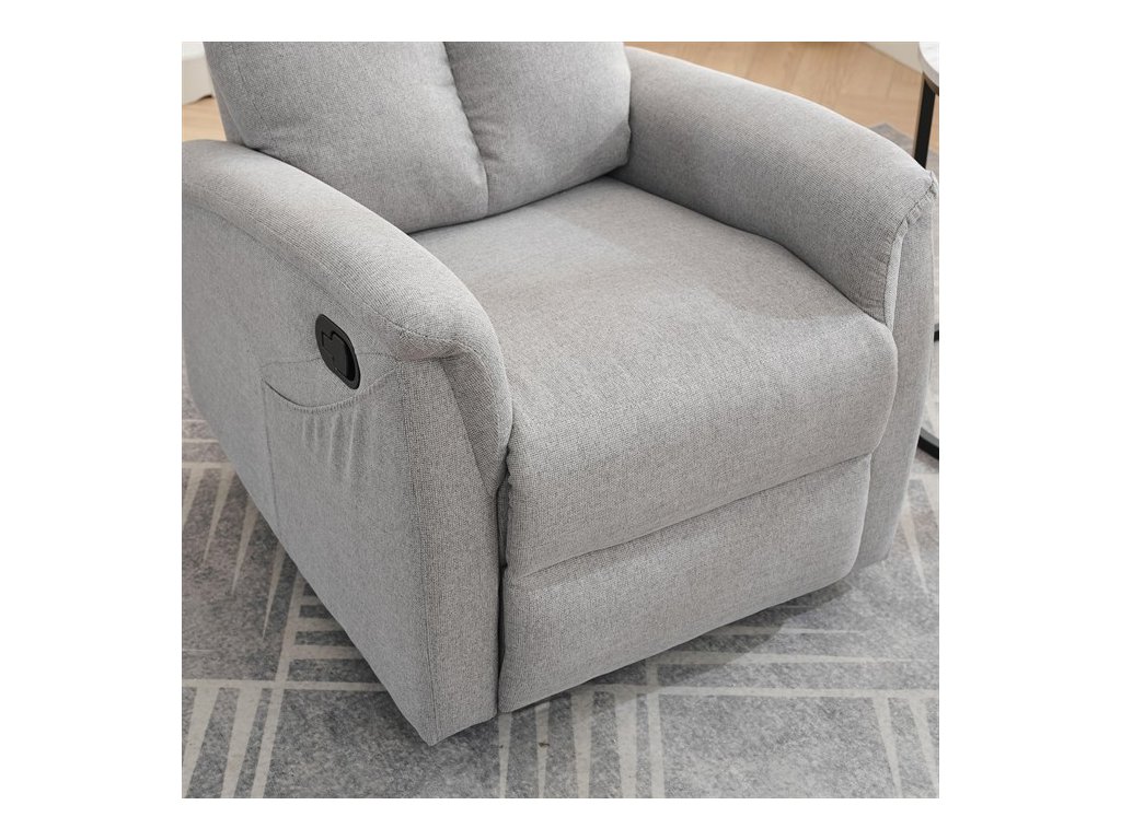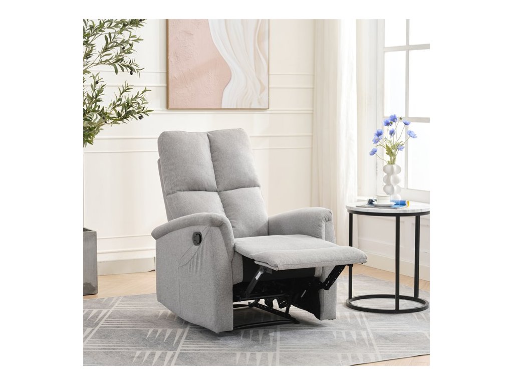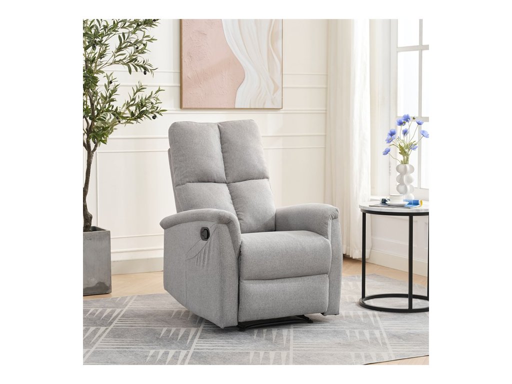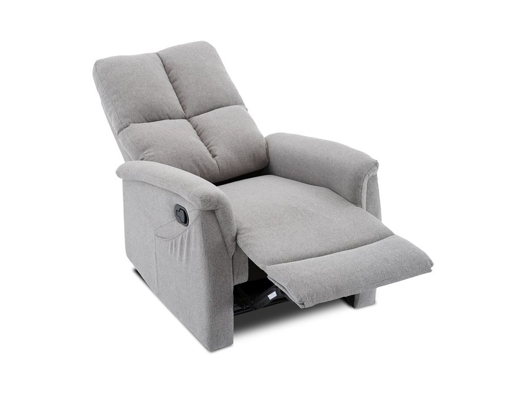 Polohovací křeslo, hnědé barvy, s manuálním ovládáním. Toto komfortní křeslo je vybaveno postranní pákou, která umožňuje snadné nastavení sklonu zadní opěrky a zvednutí podnožky.Na boku křesla je praktická kapsa pro uložení drobností, jako jsou časopisy nebo dálkový ovladač. Křeslo je navrženo pro maximální pohodlí a ergonomii, poskytuje vynikající podporu zad a relaxaci.