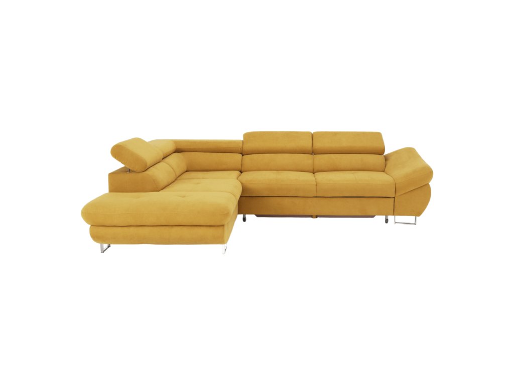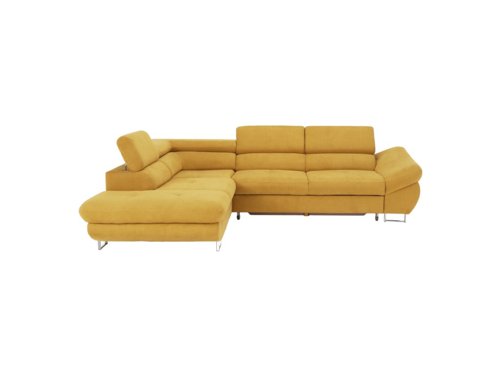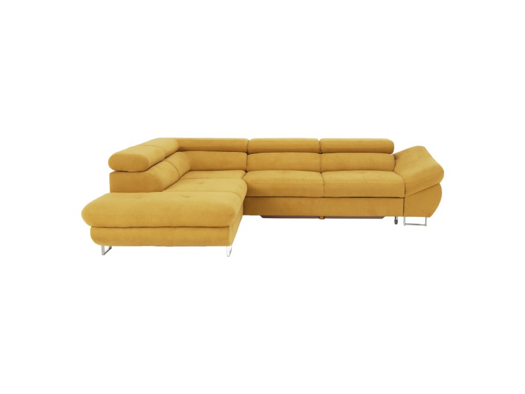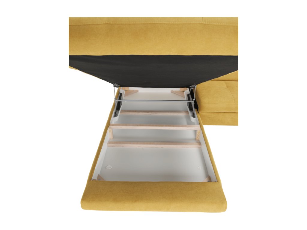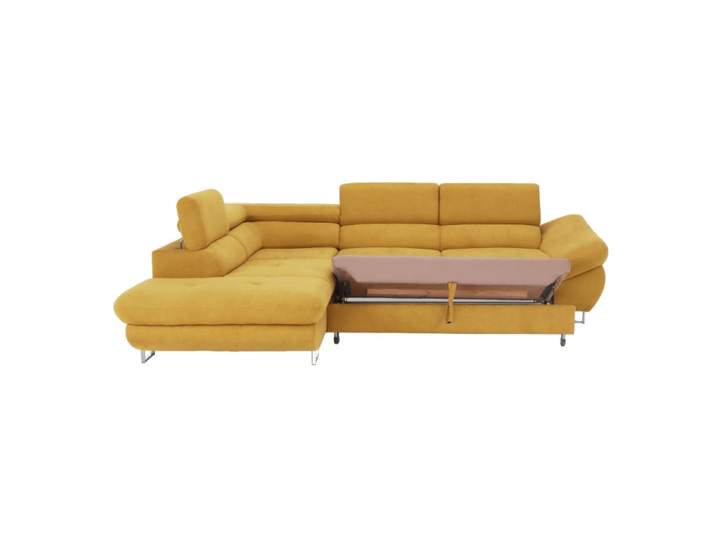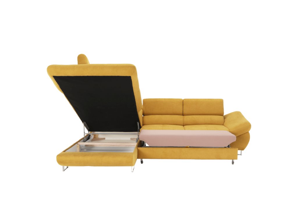 Rozkládací sedací souprava FABIA (levý roh) s úložným prostorem v provedení hořčicová látka.Oděruodolnost textilie podle testu Martindale: 90 000 oděrů