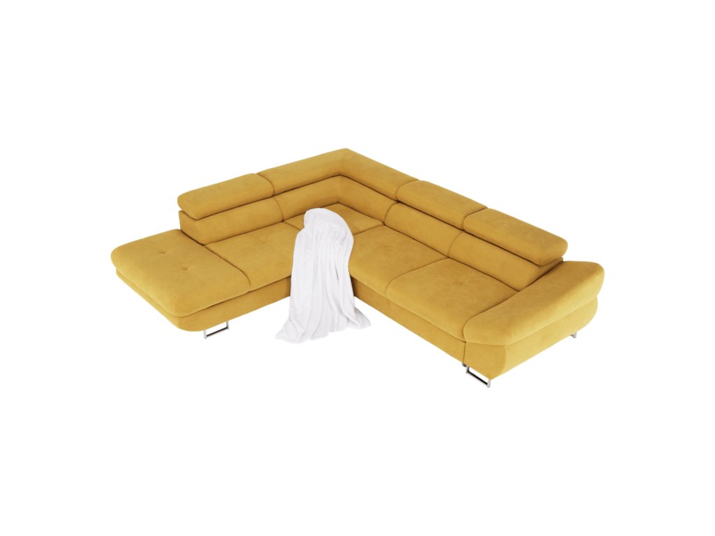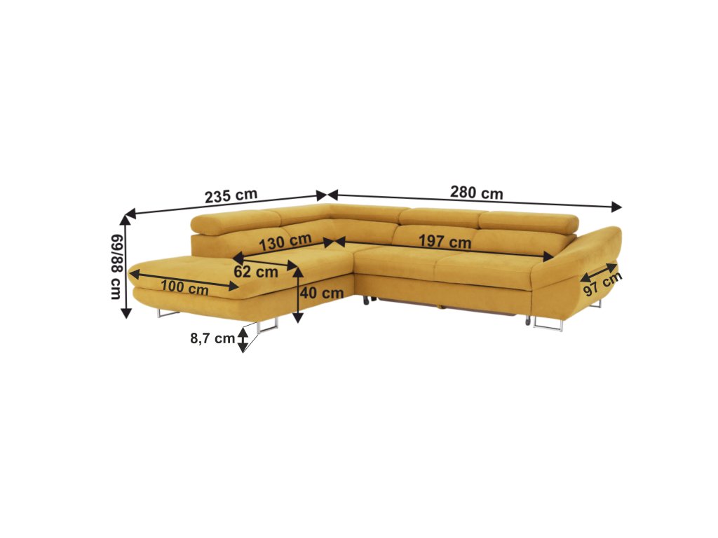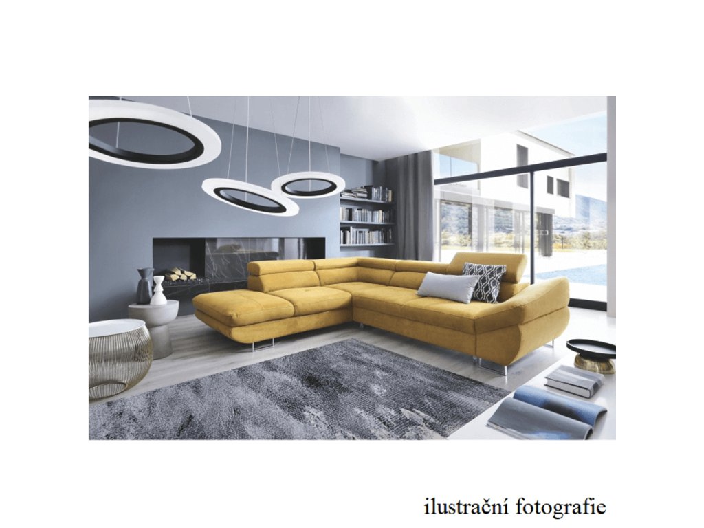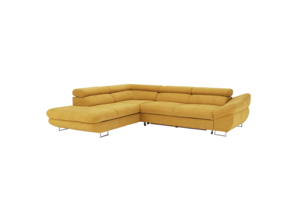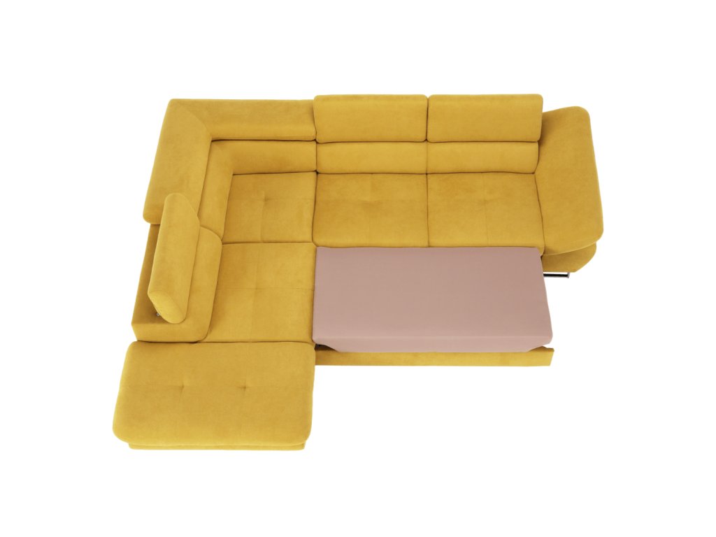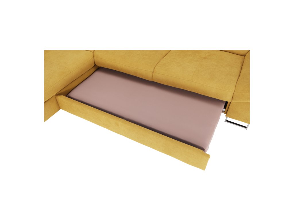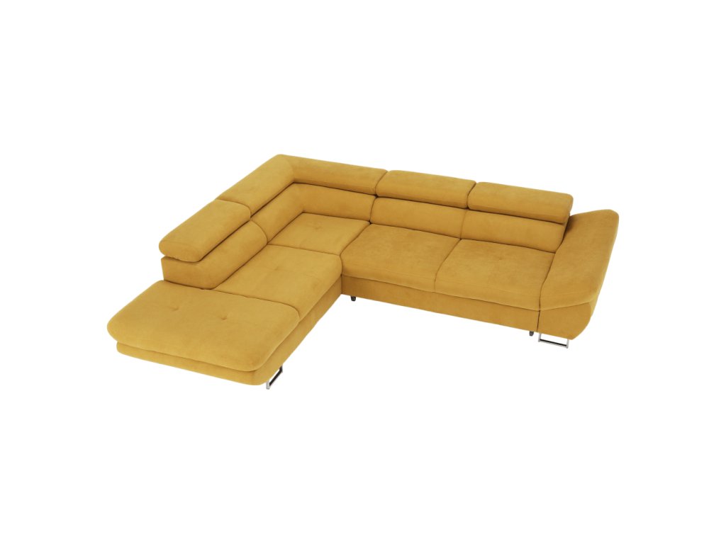 Rozkládací sedací souprava FABIA (levý roh) s úložným prostorem v provedení hořčicová látka.Oděruodolnost textilie podle testu Martindale: 90 000 oděrů
