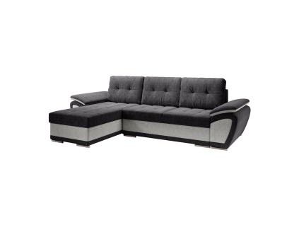 Sedací souprava DINA L je celočalouněná, rozkládací a univerzální.Barva čalounění: černá/šedáRozměry (ŠxHxV): 214x144/71x73 cm