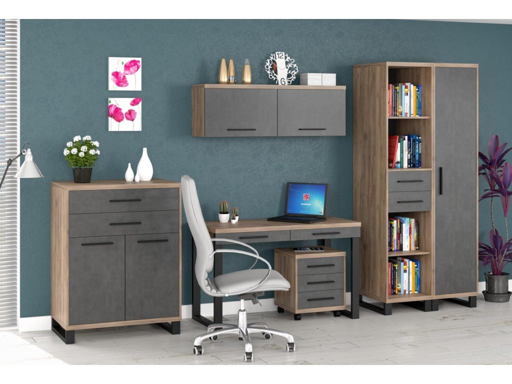 Rohový psací stůl v industriálním stylu je vyroben z kvalitní LTD v barevném provedení dub tabaco/matera. Součástí stolu je komoda se třemi zásuvkami, dvířky a policemi. Pevné kovové nohy podtrhují loftový ráz nábytku. Úchyty jsou kovové. V naší nabídce najdete široký výběr komponentů této kolekce, které si můžete dokoupit. Dodáváme v demontovaném stavu.Doplňkové parametry