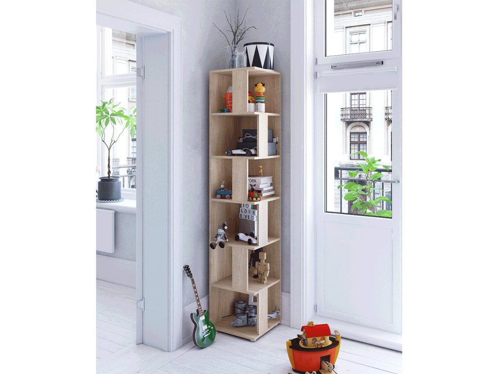 Rohový regál Korind v moderním dekoru dub sonoma efektivně využije i malý prostor a dodá místnosti svěží vzhled. Skvělý do obýváku, ložnice či pracovny.✔ 6 polic pro maximální úložné místo