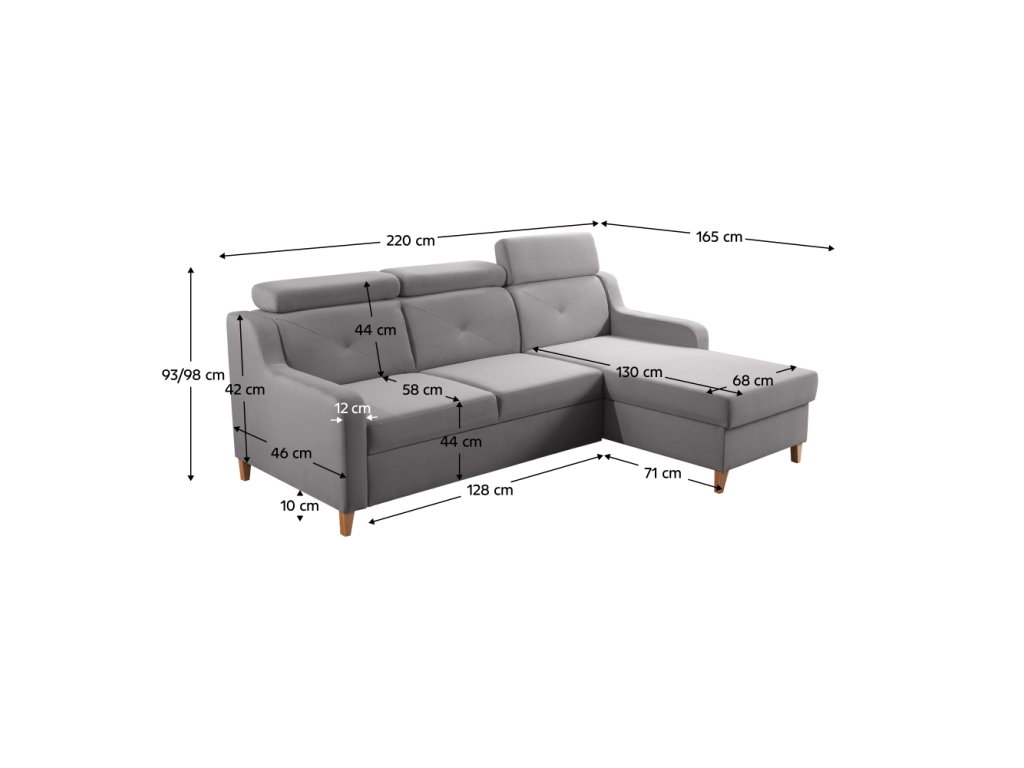 - Úložný prostor, polohovatelné opěrky, dřevěné nožky