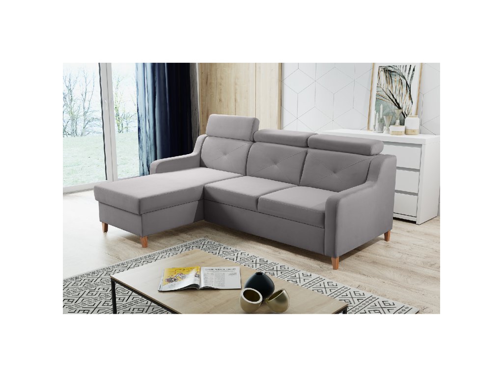 Rozkládací rohová souprava ARABELLA v světle šedé s odolnou látkou Trinity 33 (55 000 Martindale) nabízí pohodlí i funkčnost.- Rozměry: 220×165×93/98 cm