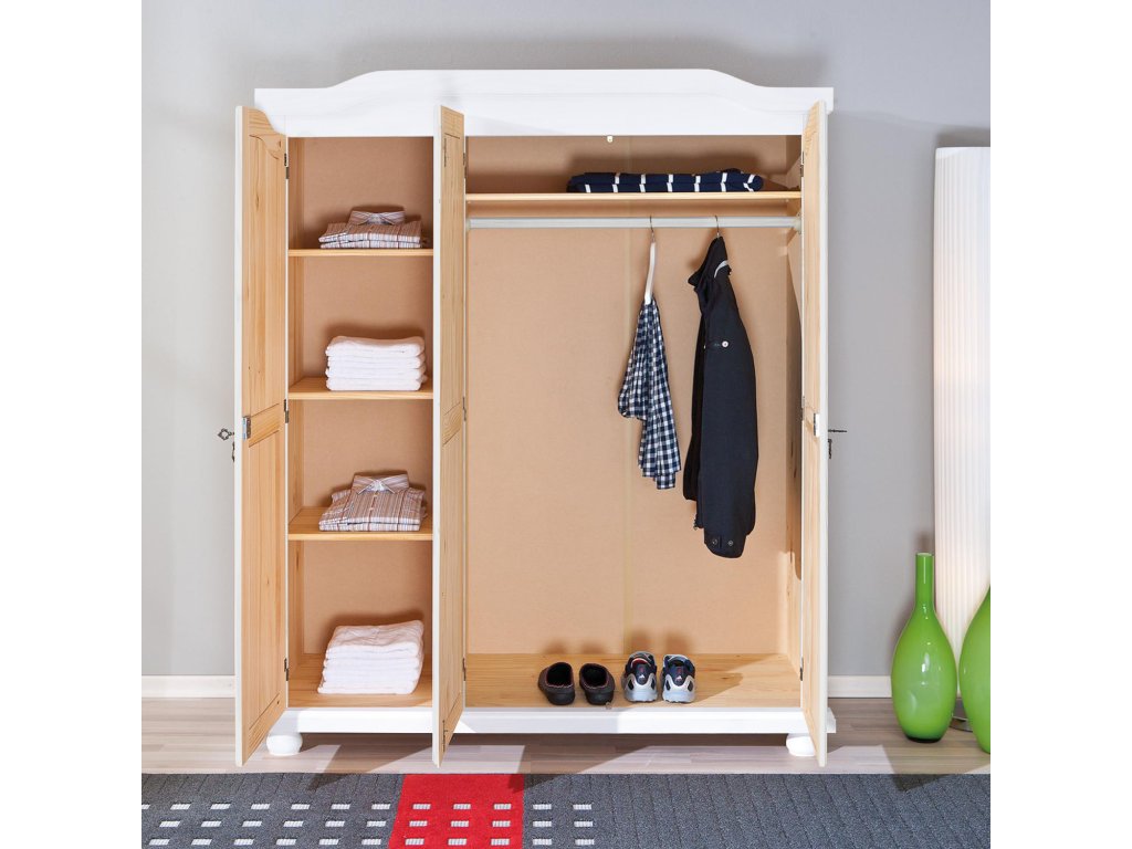 - barevné provedení bílý lak prostor dělený v poměru 2:1 širší část šatní tyč a police