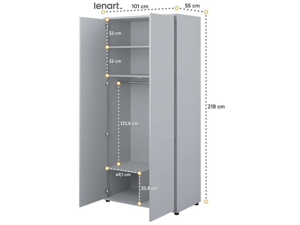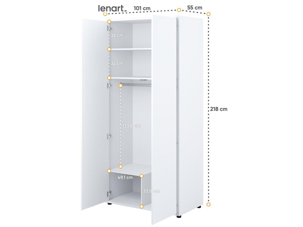 Dvoukřídlá šatní skříň REBECCA v kombinaci bílý lesk/ bílý mat nabízí elegantní vzhled a praktické využití.✔ Rozměry 101 × 218 × 55 cm – dostatek úložného prostoru