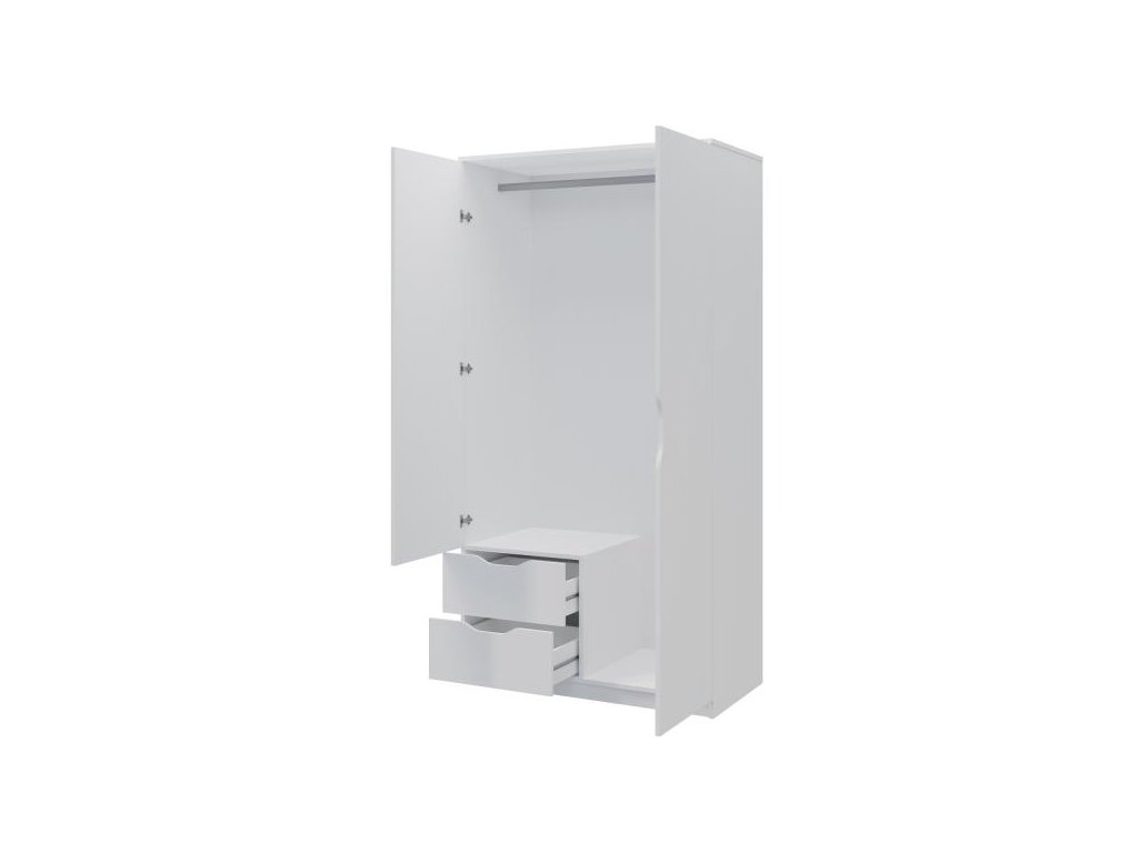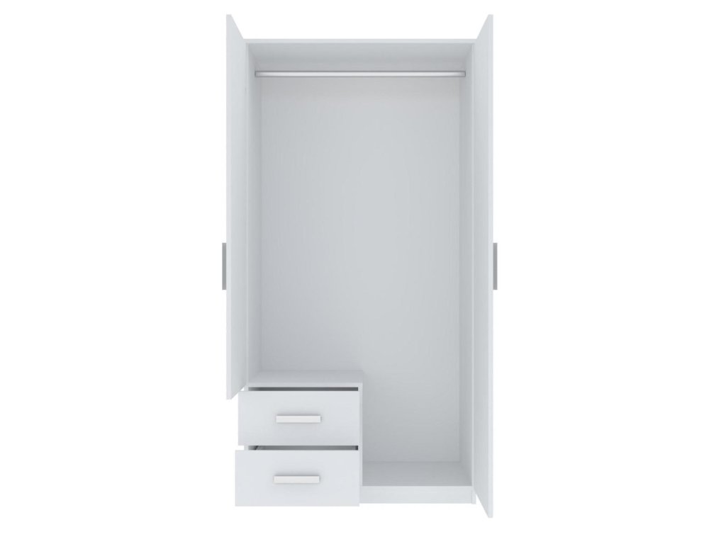 Šatní skříň dvoudveřová se dvěma zásuvkami, je vyrobena z kvalitní LTD desky v barevném provedení bílá. Uvnitř skříně je šatní tyč, dveře jsou doplněny zrcadlem. V naší nabídce naleznete více variant nábytku této řady. Dodáváme v demontovaném stavu.Doplňkové parametry