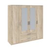 Šatní skříň čtyřdveřová se dvěma zásuvkami, je vyrobena z kvalitní LTD desky v barevném provedení bílá. Uvnitř skříně jsou dvě šatní tyče po stranách a uprostřed policový systém, dveře jsou doplněny zrcadlem. V naší nabídce naleznete více variant nábytku této řady. Dodáváme v demontovaném stavu.Doplňkové parametry