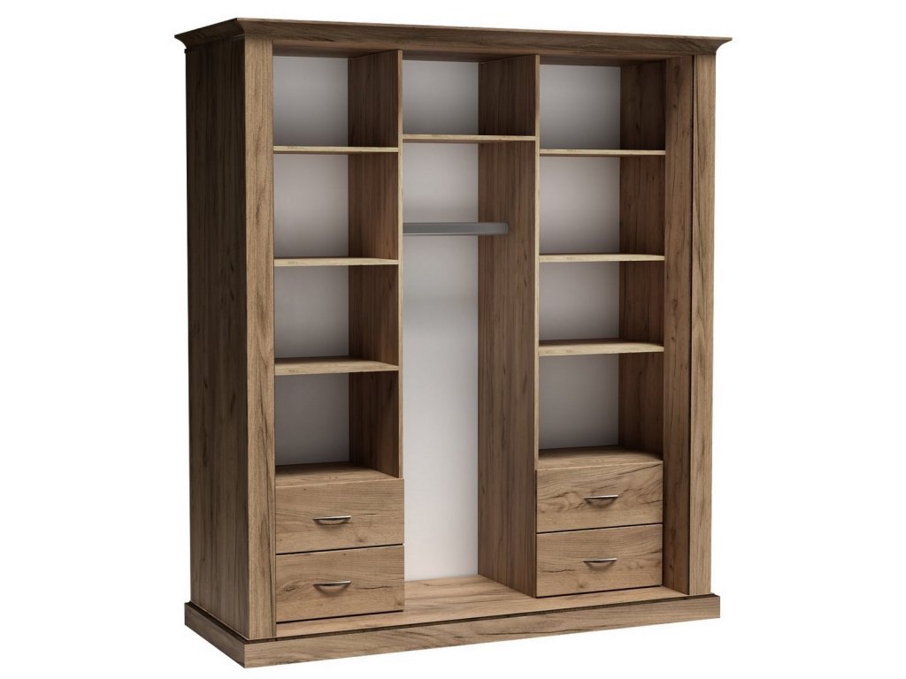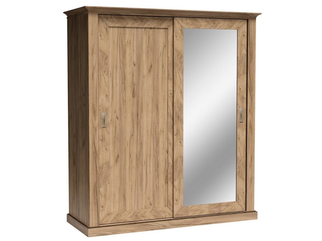 Šatní skříň se zrcadlem. Součástí vnitřního vybavení je věšáková tyč, police i zásuvky. Kolekce nábytku v sobě spojuje jednoduchost, krásný vzhled a funkčnost. Jedná se o stylovou kolekci nábytku rustikálního stylu, který je vhodný jak do ložnice tak do obývacího pokoje. Jeho barevné provedení vnese do domova lehkost a eleganci. Barevné provedení - dub zlatý kraft. Nábytek je vyroben z kvalitního lamina ohraničeného ABS páskou. Kolekce se skládá z mnoha prvků a tento široký výběr vám zaručí sestavit si nábytek podle svých vlastních představ a přání. Dodáváme v demontovaném stavu.Doplňkové parametry