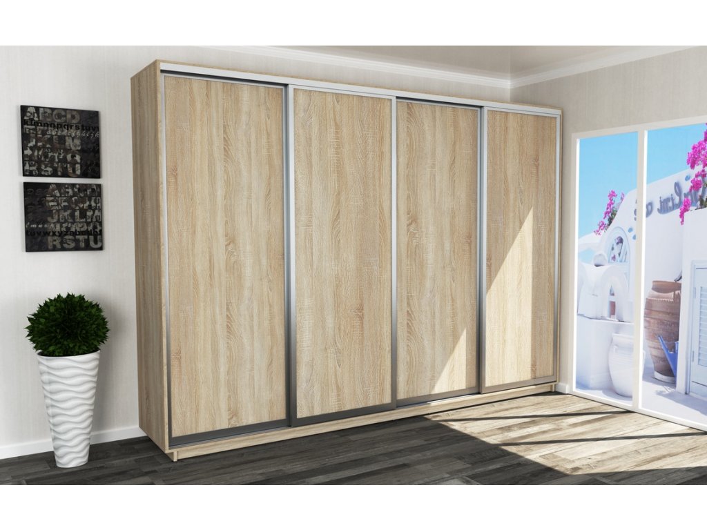 Šatní skříň s posuvnými dveřmi v moderním provedení. Nezvyklá výška 220 cm a šířka 300 cm Vám nabídne opravdu velký úložný prostor. Korpus i dveře jsou z kvalitní LTD desky v barvě dub sonoma. Skříň má aluminiové kování a lišty. Uspořádání polic viz. obrázek. Dodáváme v demontovaném stavu. Možnost dokoupení praktického bočního regálu nebo zásuvek do vnitřního prostoru skříně (modrá barva na perokresbě naznačuje, kam lze zásuvky umístit), obojí naleznete v naší nabídce.Doplňkové parametry