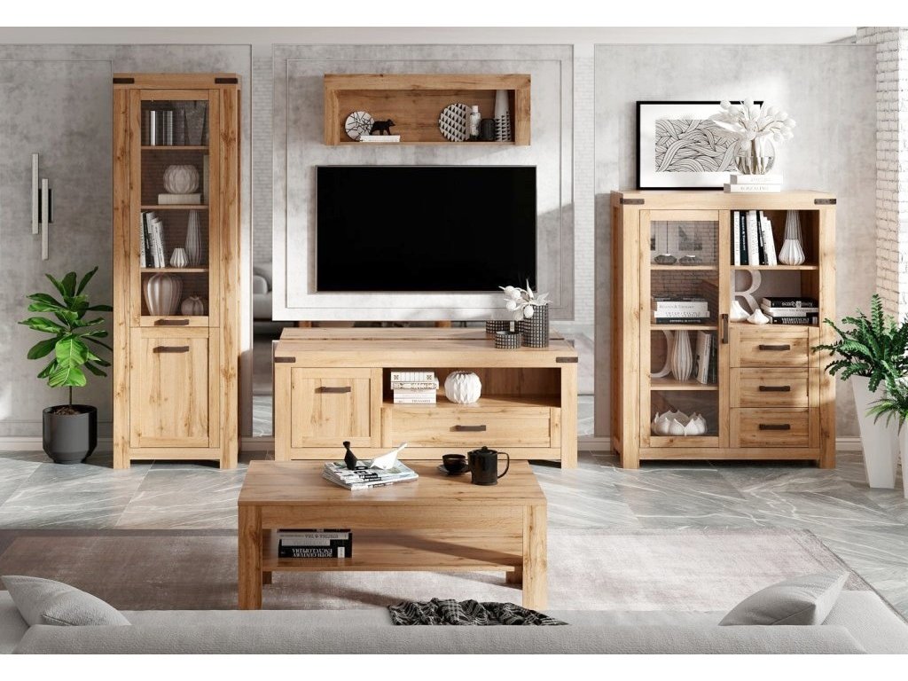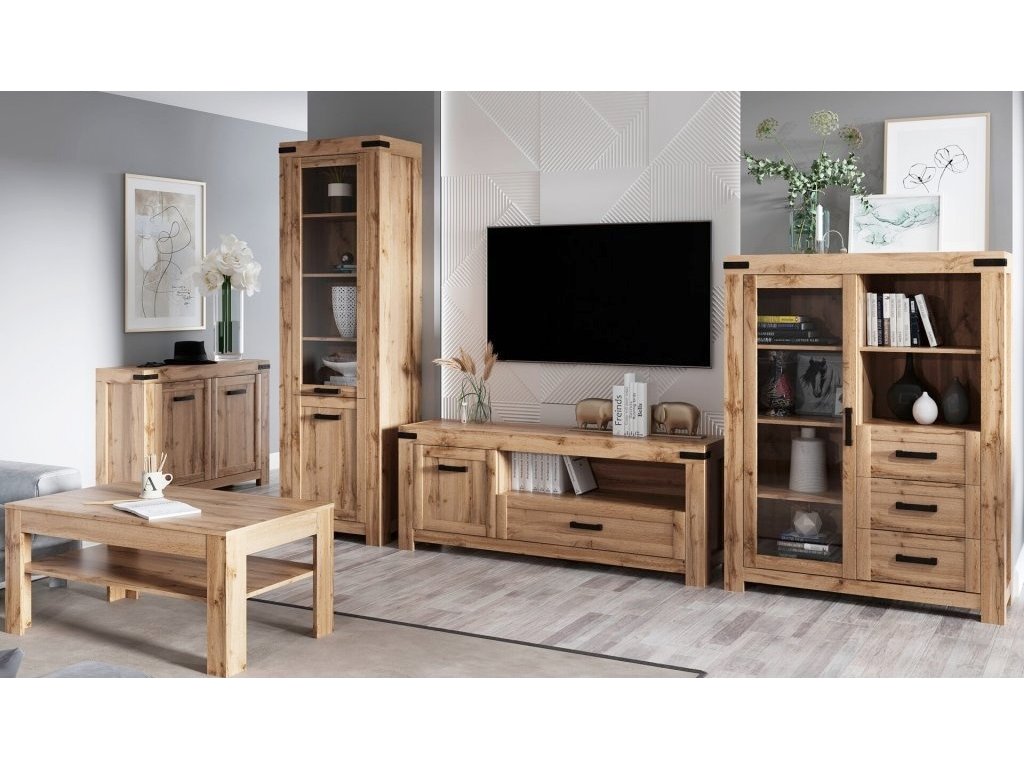 Moderní obývací sestava RIMOTTO (dub Wotan) – elegantní vitríny a TV stolek v jednotném designu pro stylový a praktický obývací pokoj.