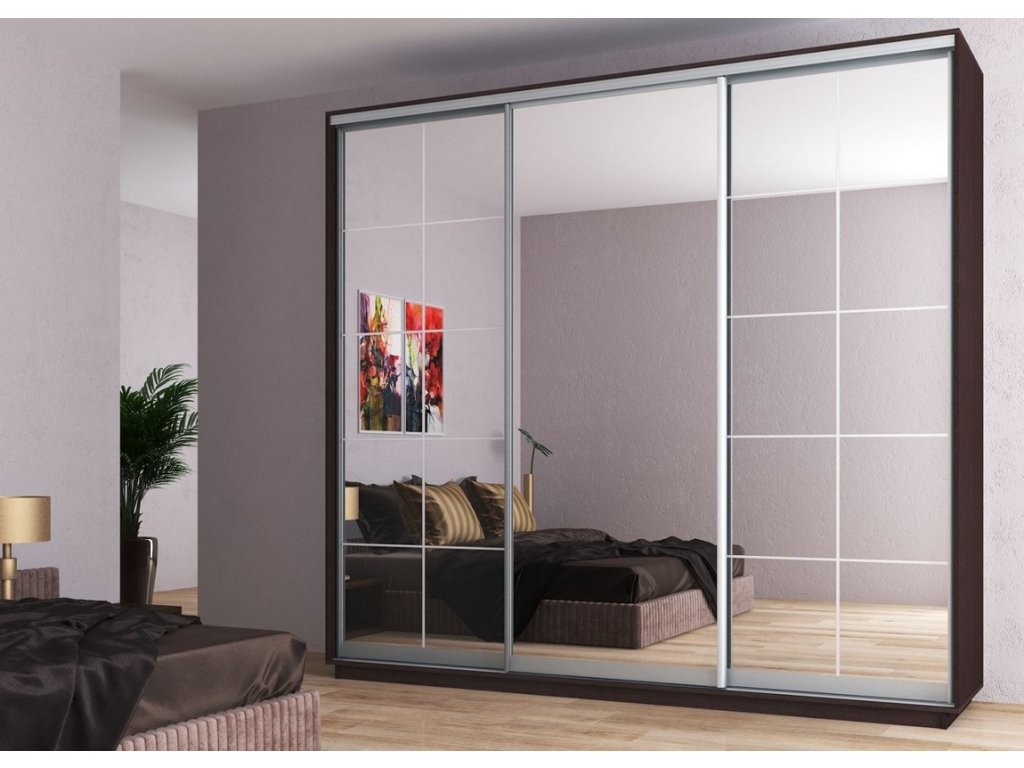Velká šatní skříň s posuvnými dveřmi nabízí díky své velikosti více úložného prostoru, hodí se do každé ložnice či šatny. Posuvné dveře skvěle šetří místo v prostoru a díky zrcadlu po celé šířce bude Vaše ložnice opticky zvětšena a projasněna. Korpus je z kvalitní LTD desky v barvě wenge, posuvné dveře jsou osazeny zrcadly s pískováním. Nezvyklá výška 220 cm nabídne opravdu dostatek prostoru. Skříň má aluminiové kování a lišty. Vnitřní rozložení nabízí police a šatní tyč viz. obrázek. Dodáváme v demontovaném stavu. Možnost dokoupení praktických zásuvek do vnitřního prostoru skříně (modrá barva na perokresbě naznačuje, kam lze zásuvky umístit), naleznete v naší nabídce.Doplňkové parametry
