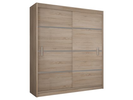 Šatní skříň s posuvnými dveřmi v moderním provedení vhodná do všech moderních interiérů. Korpus i dvířka jsou z kvalitní LTD desky v barvě dub wellington, ve středové části jsou...