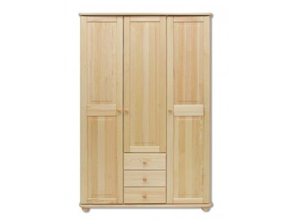 Velká skříň z masivní borovice, rozdělená v poměru 2:1:2. Dvě šatní tyče, police i zásuvky s kovovými pojezdy. Doporučený nástavec: 8169K.