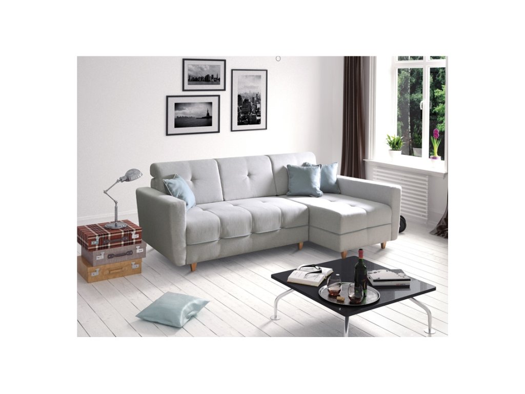 Rohová celočalouněná rozkládací sedací souprava s úložným prostorem HAKANMateriál: látka MALMO NEW 83/72 / dřevo