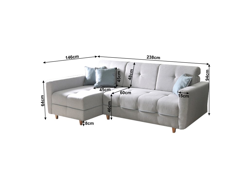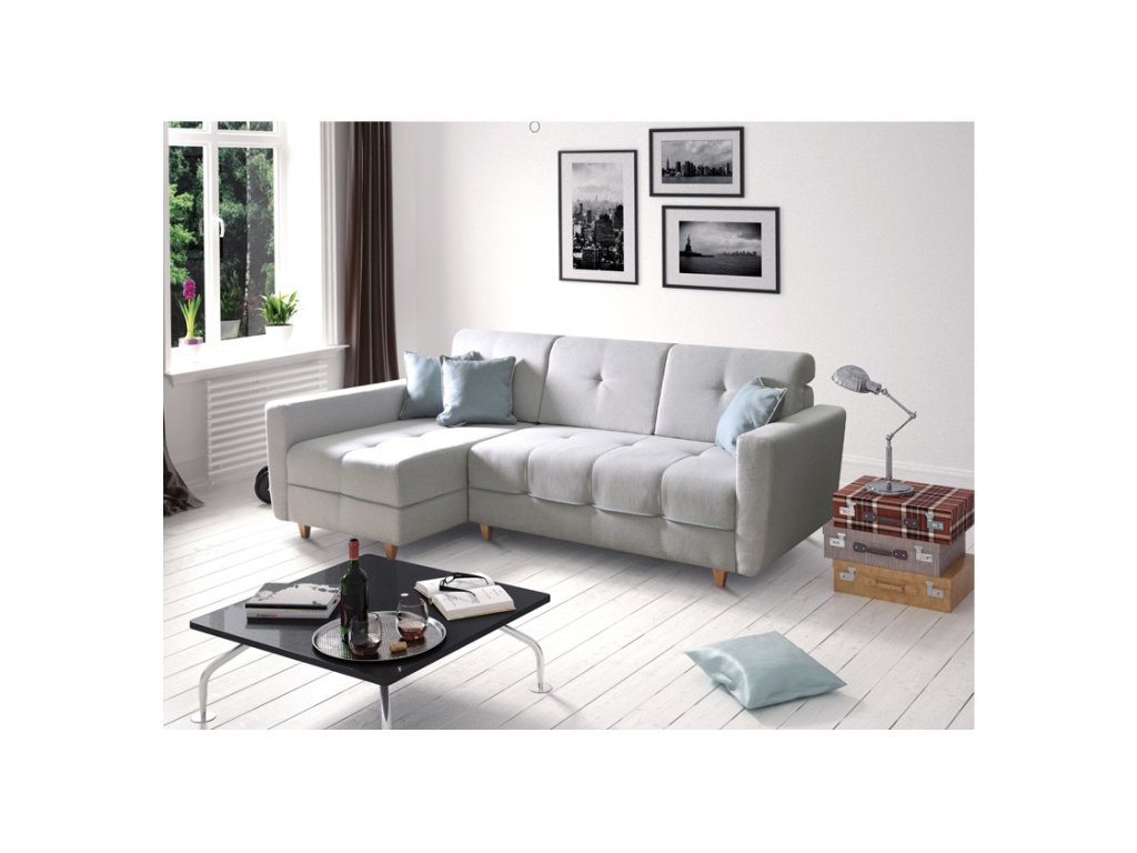 Rohová celočalouněná rozkládací sedací souprava s úložným prostorem HAKANMateriál: látka MALMO NEW 90/61 / dřevo