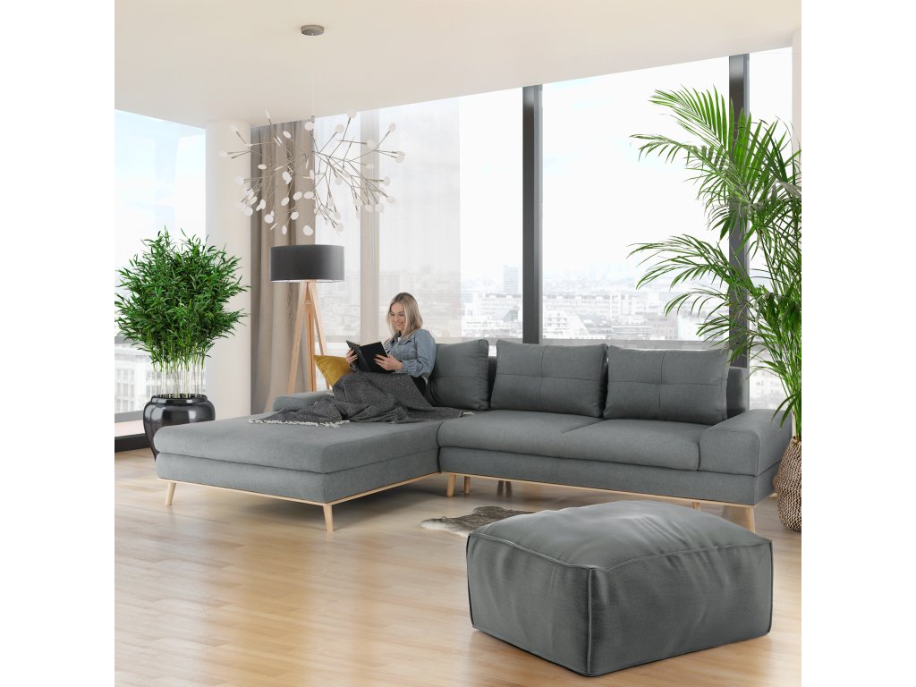 Rohová celočalouněná rozkládací sedací souprava s úložným prostorem PANOSMateriál: látka / dřevo