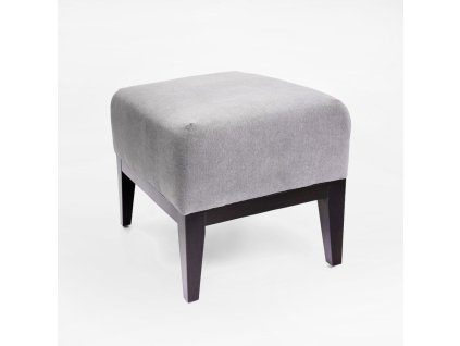 Čalouněná lavice-taburet v moderním provedení. Nábytek je vyroben z desky MDF, nožky jsou dřevěné v barvě ořech, polstrování sedáku je provedeno látkou v šedé barvě.