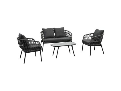 Praktický zahradí set s voděodolnou látkou.Materiál: technoratan/látka/kov/tvrzené sklo.Oděruodolnost textilie podle testu Martindale: 95 000 oděrů.Barva: světle...