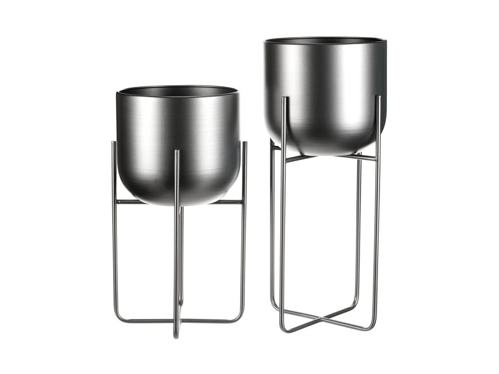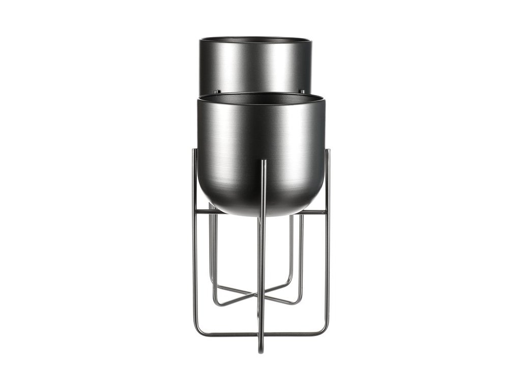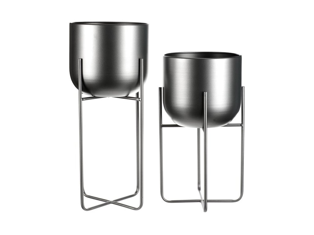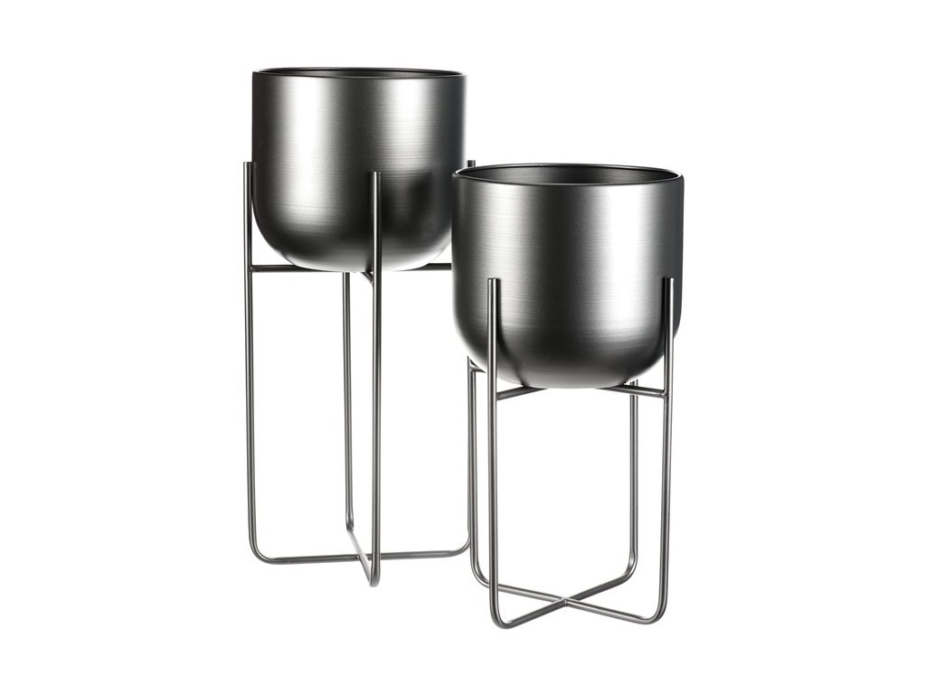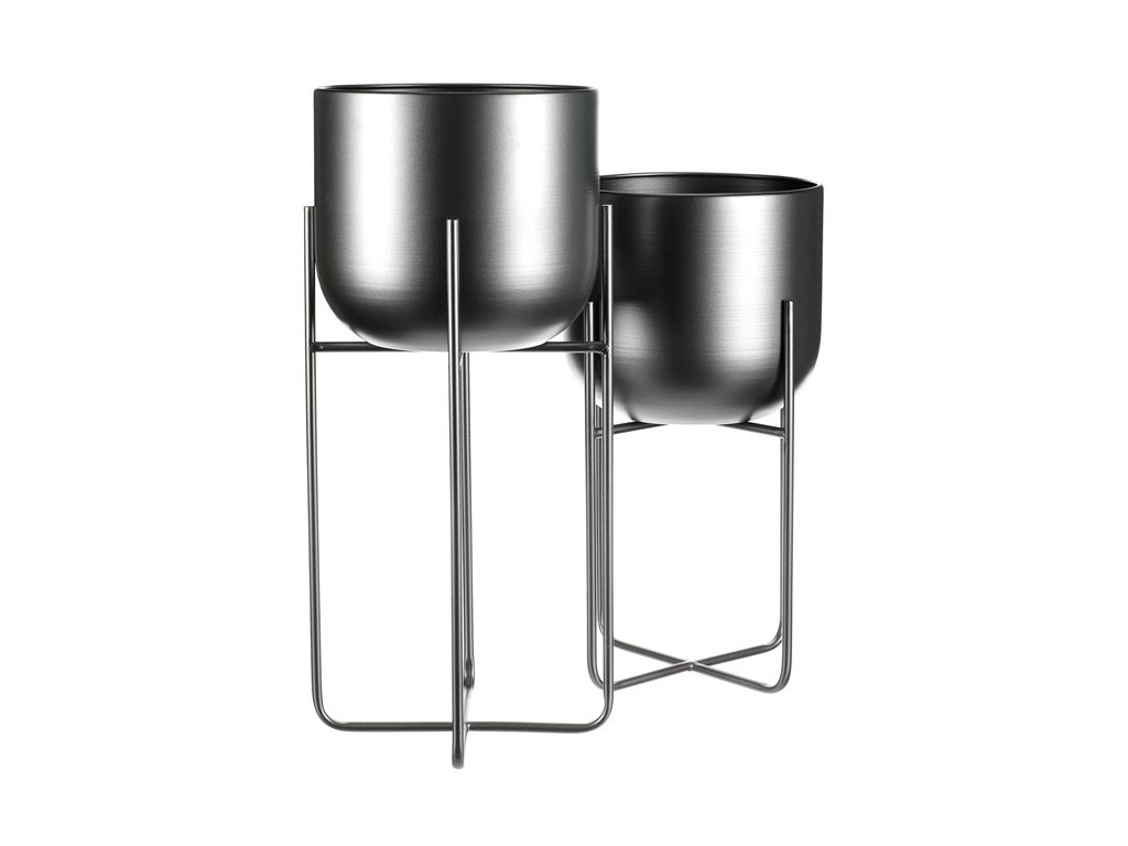 Set 2 ks kovových stojanů na květiny. interiérové provedení. Konstukce a obal na květináč je kovový, v povrchové úpravě antracitový satin.Minimalistický design, industriální styl.