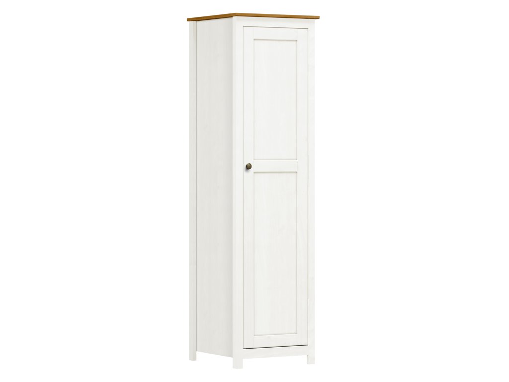 Policová skříň, materiál masiv borovice, barevné provedení bílý / hnědý lak, čtyři police, montáž dveří možná na pravou i levou stranu.Doplňkové parametry