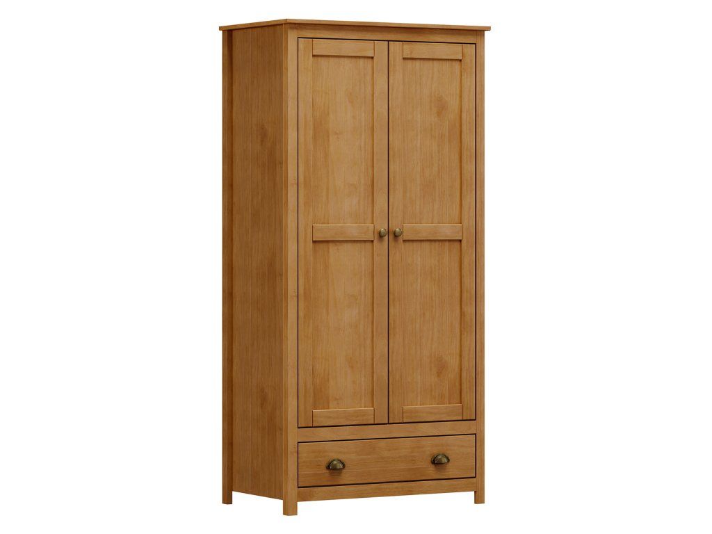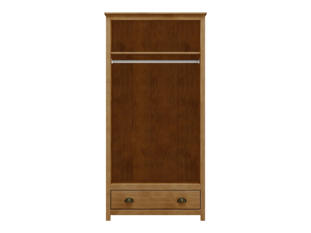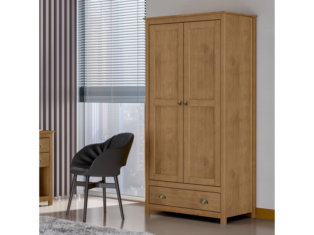 Skříň 2dveřová TOPAZIO 206281D dubElegantní a praktická 2dveřová šatní skříň z kolekce TOPAZIO v provedení dub přináší kvalitní zpracování z masivní borovice. Nabízí dostatek úložného prostoru díky jedné prostorné polici, kovové šatní tyči a spodní zásuvce na kovových pojezdech. Kovové úchytky podtrhují tradiční design s nádechem rustikálního stylu.