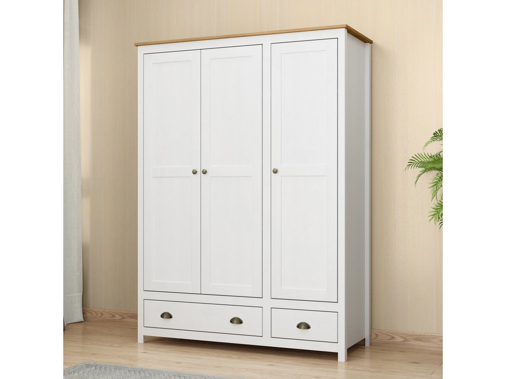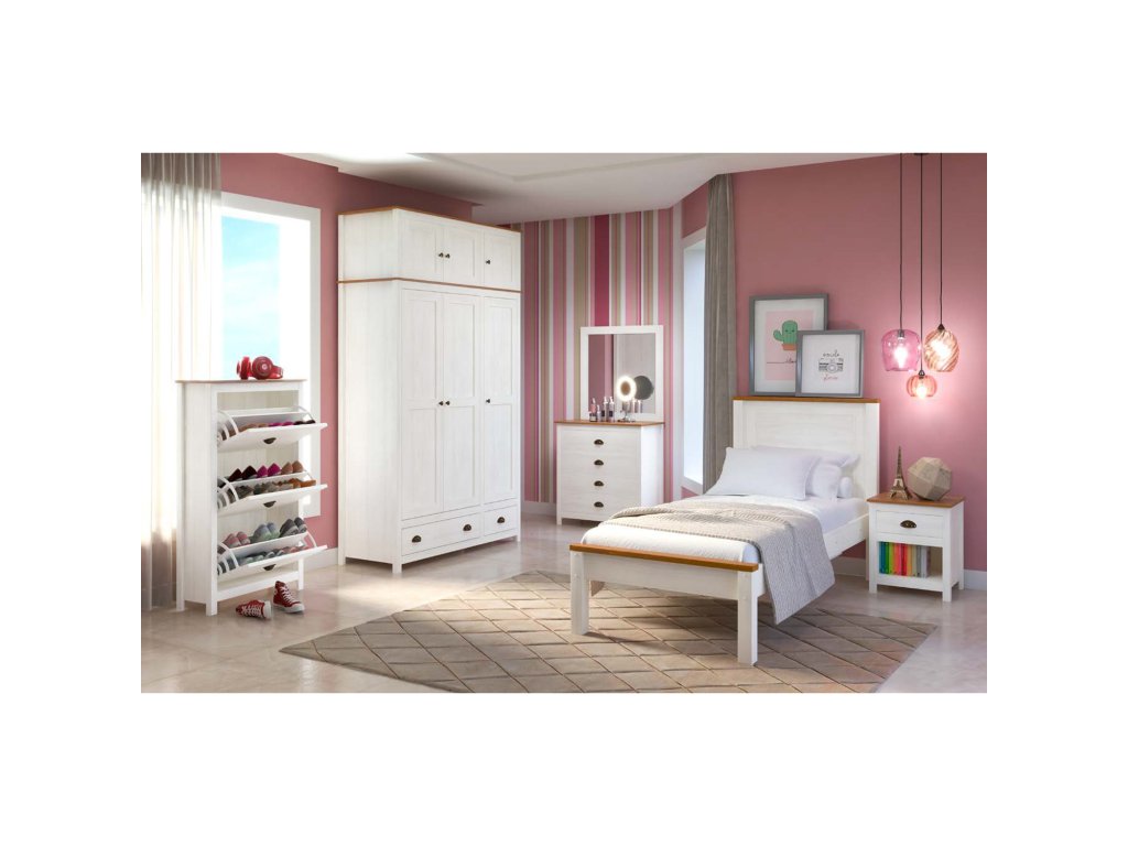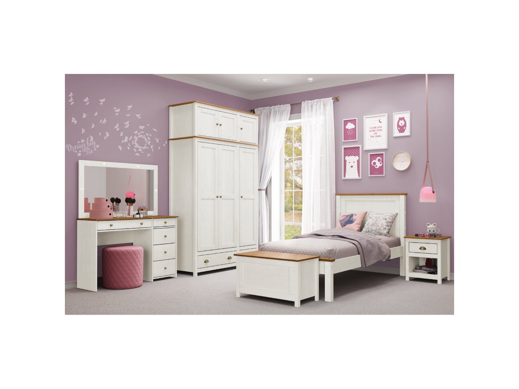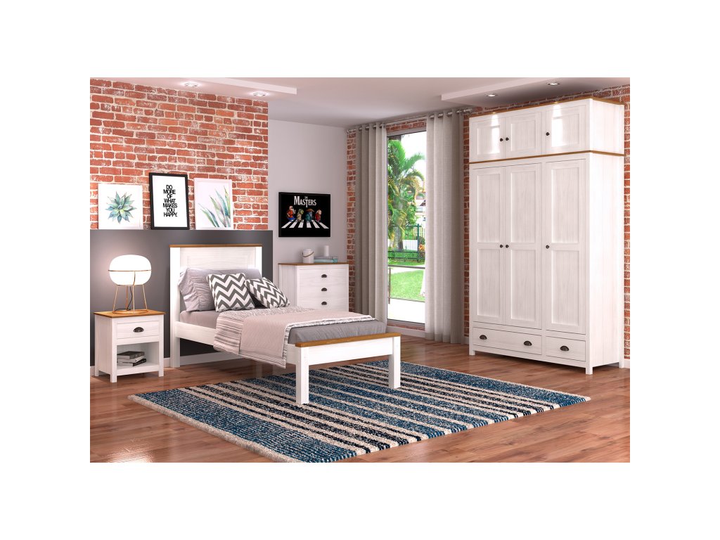 Materiál masiv borovice, barevné provedení bílý / hnědý lakdvě zásuvky s kovovými úchytkami a pojezdy