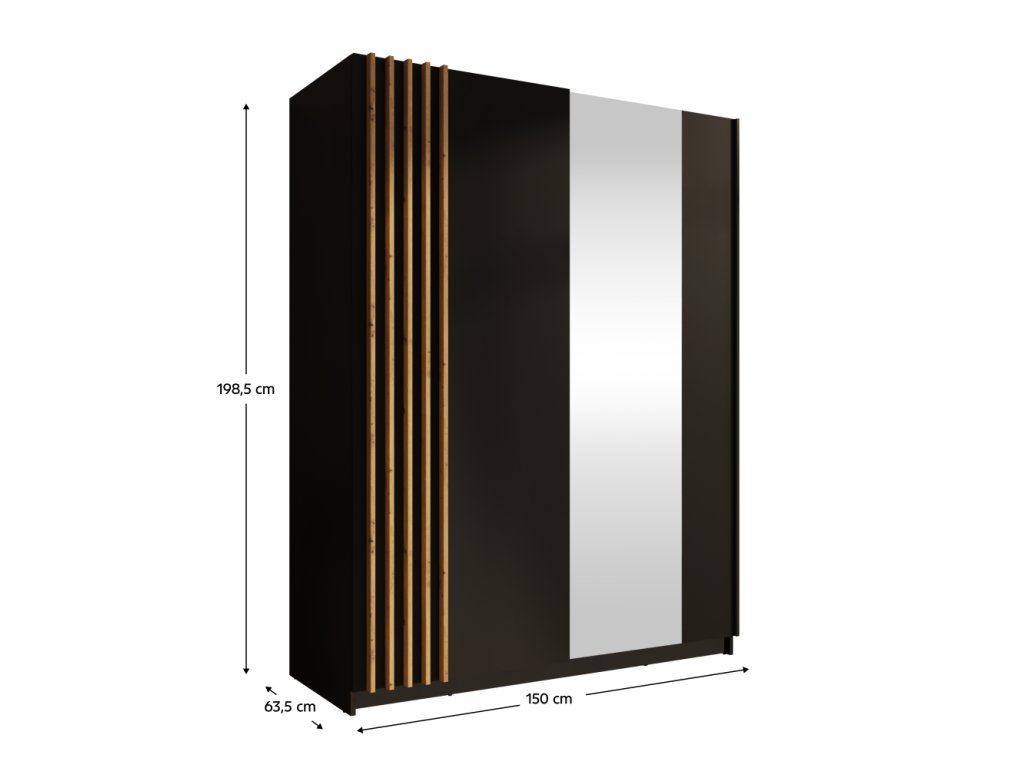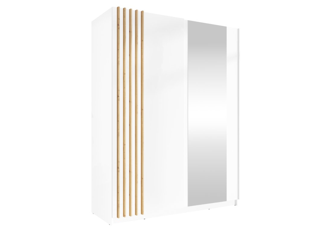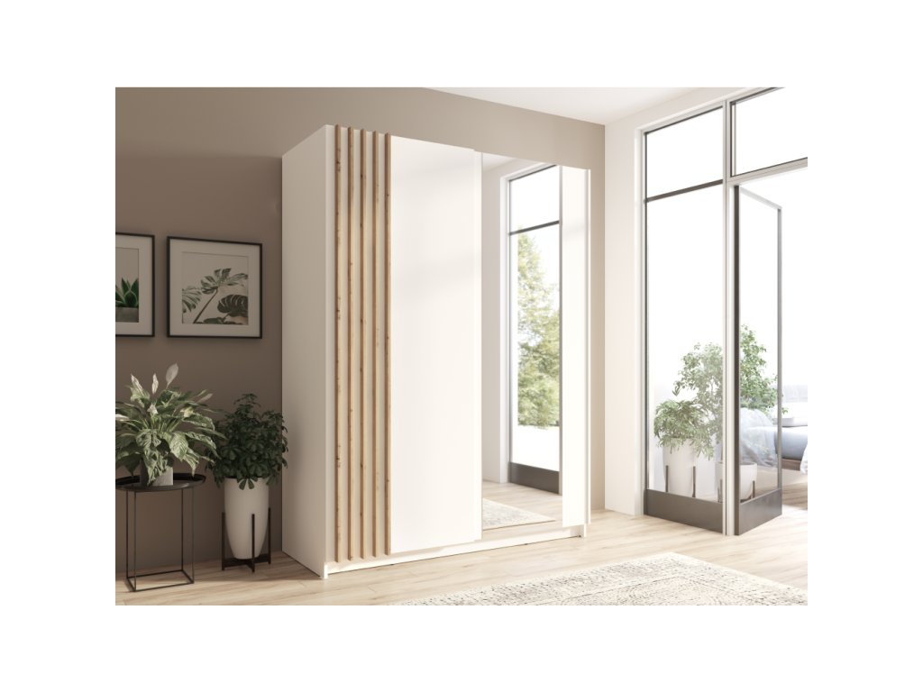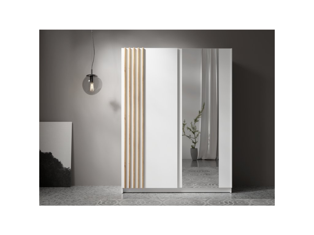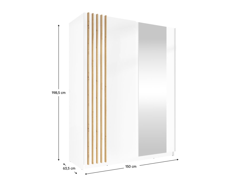 Elegantní skříň BAJADERO TYP 1 zaujme moderním designem v kombinaci bílé a dubu artisan. Nabízí dostatek úložného prostoru pro oblečení i doplňky.✔ Rozměry: 150×63,5×198,5 cm