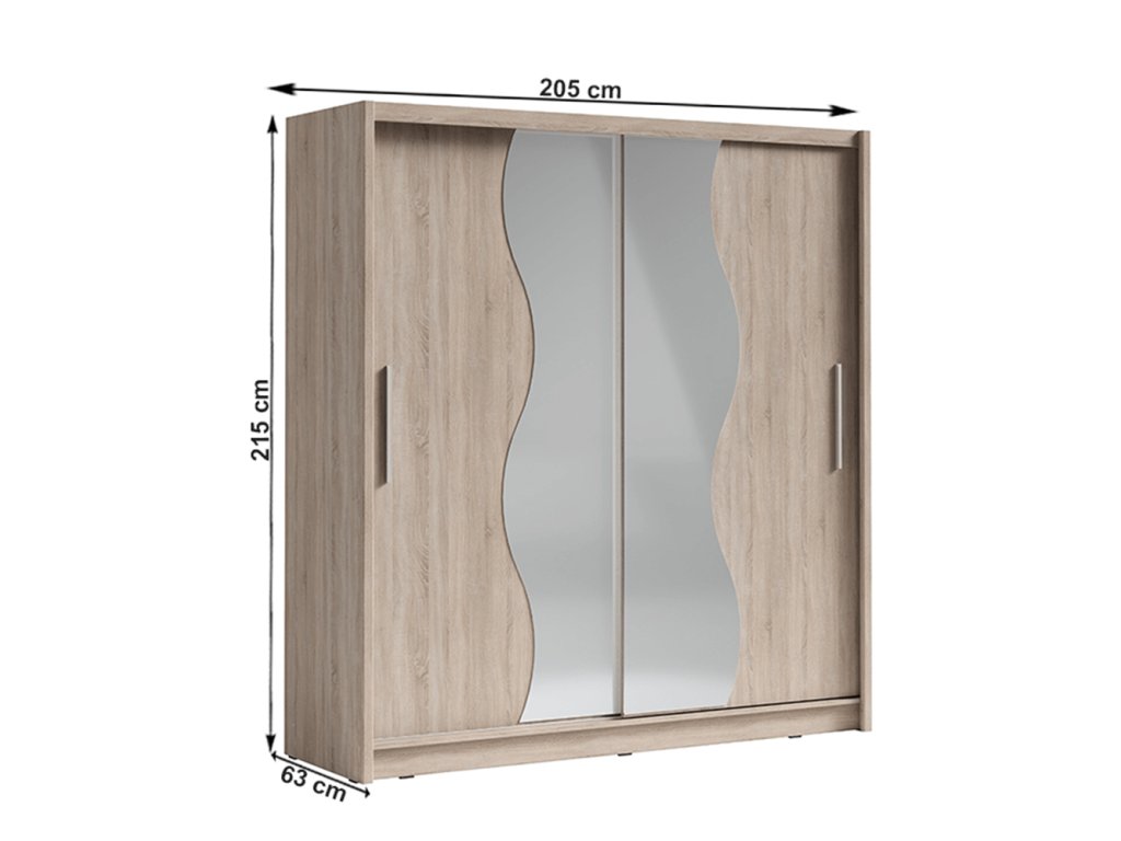 Skriňa so zrkadlom, s posúvacími dverami BIRGAMO TYP 1Materiál: DTD laminovaná/zrkadlo