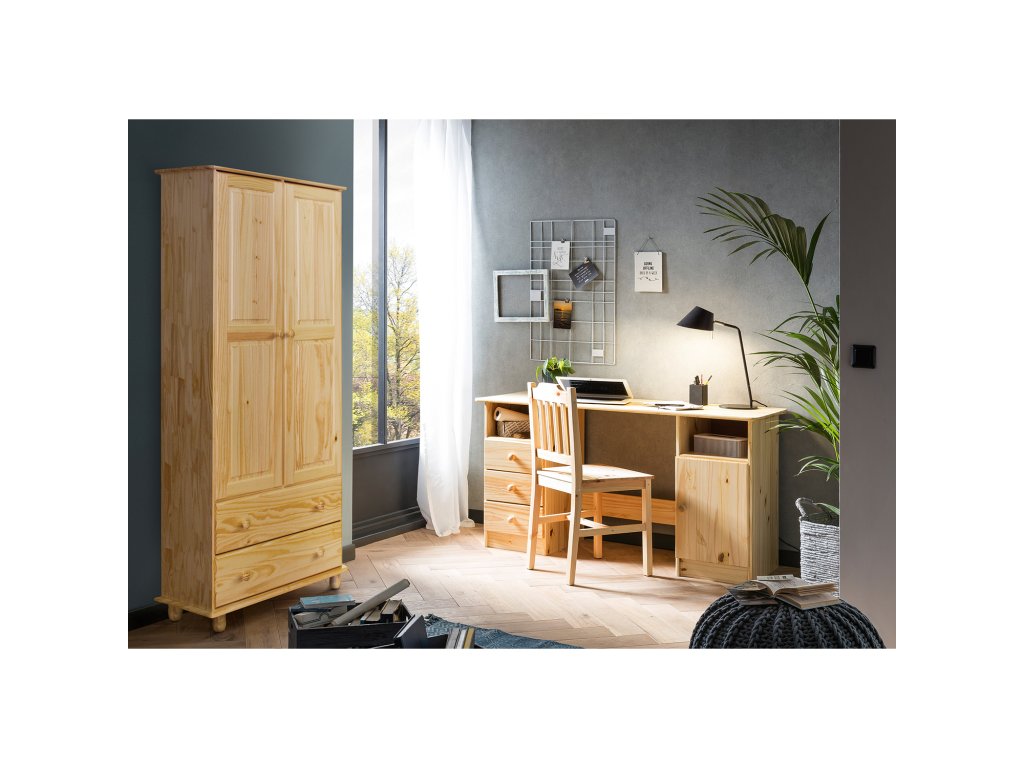 materiál masiv borovice, lakované provedení, dvě široké zásuvky s kovovými pojezdy, v horní části šatní tyč a 3 police doporučený nástavec 8861Doplňkové parametry