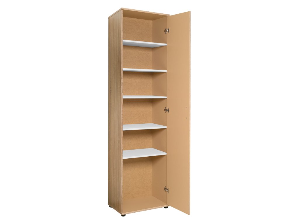 Policová skříň, barevné provedení dub sonoma, pět variabilních polic vnitřní a nepohledové strany desek a police skříně mohou být v různém barevném provedení, například bílé, šedé, hnědé.Doplňkové parametry