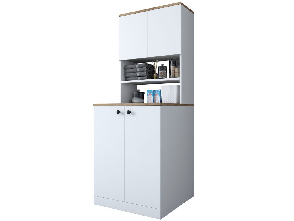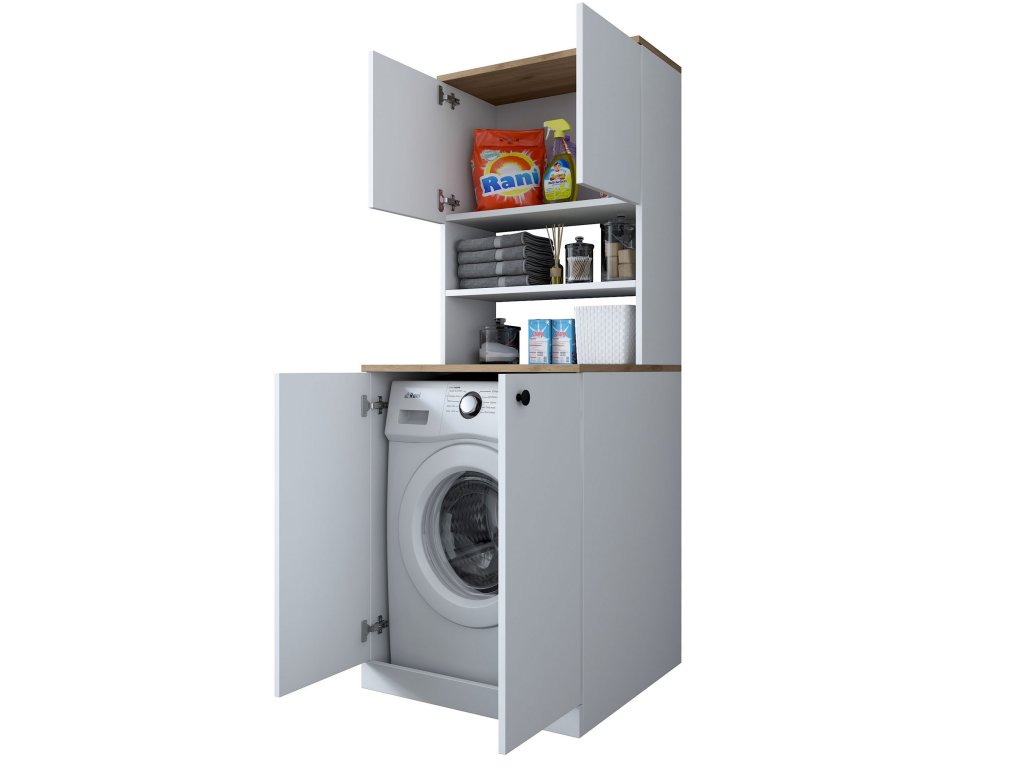 Skříňka nad pračku INDIE je ideálním doplňkem do moderní koupelny, který nabízí praktický úložný prostor a elegantní design. Kombinace bílé barvy a dekoru ořechu přidává koupelně svěžest a styl, zatímco promyšlené uspořádání umožňuje efektivní využití prostoru.