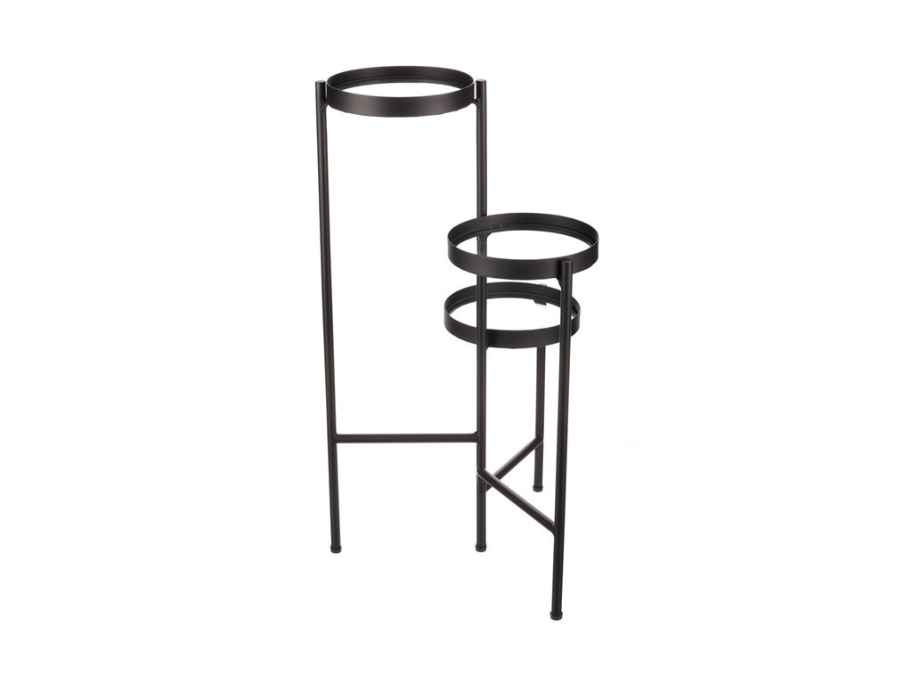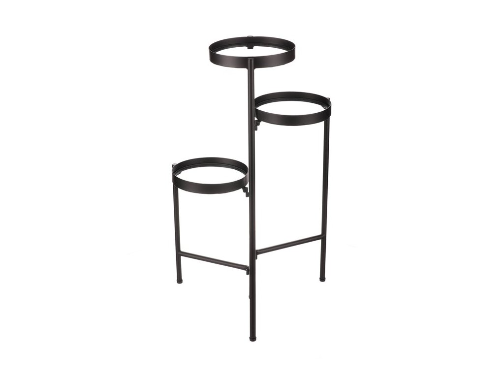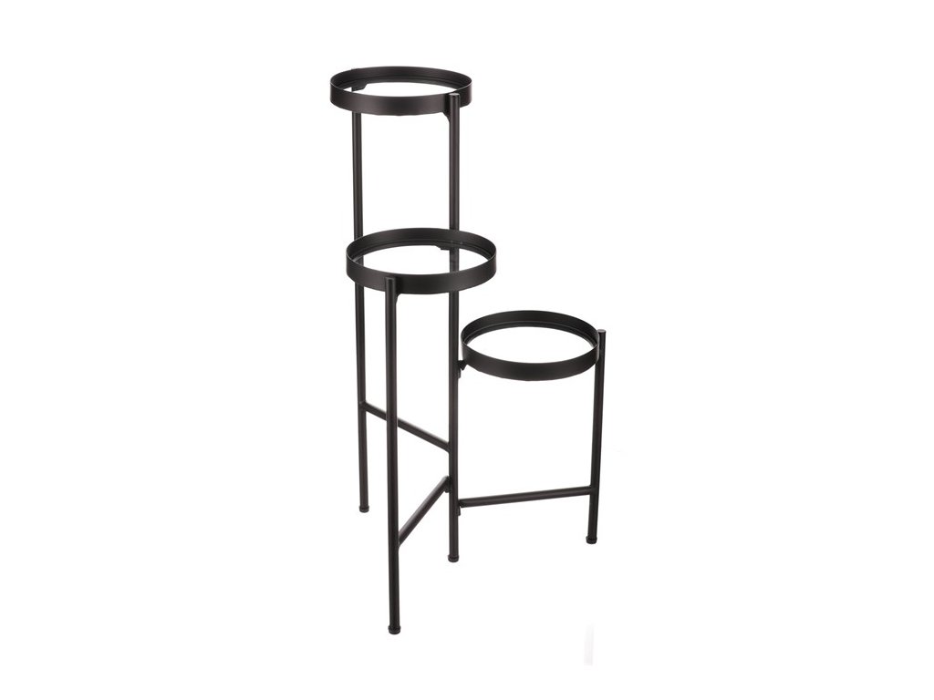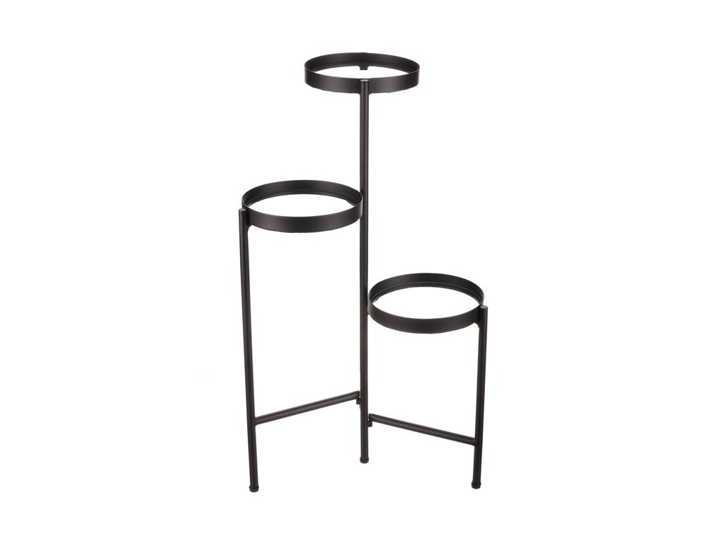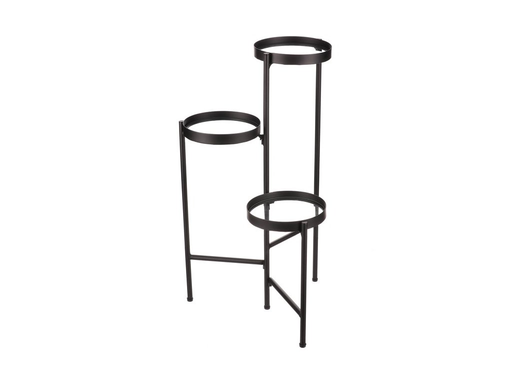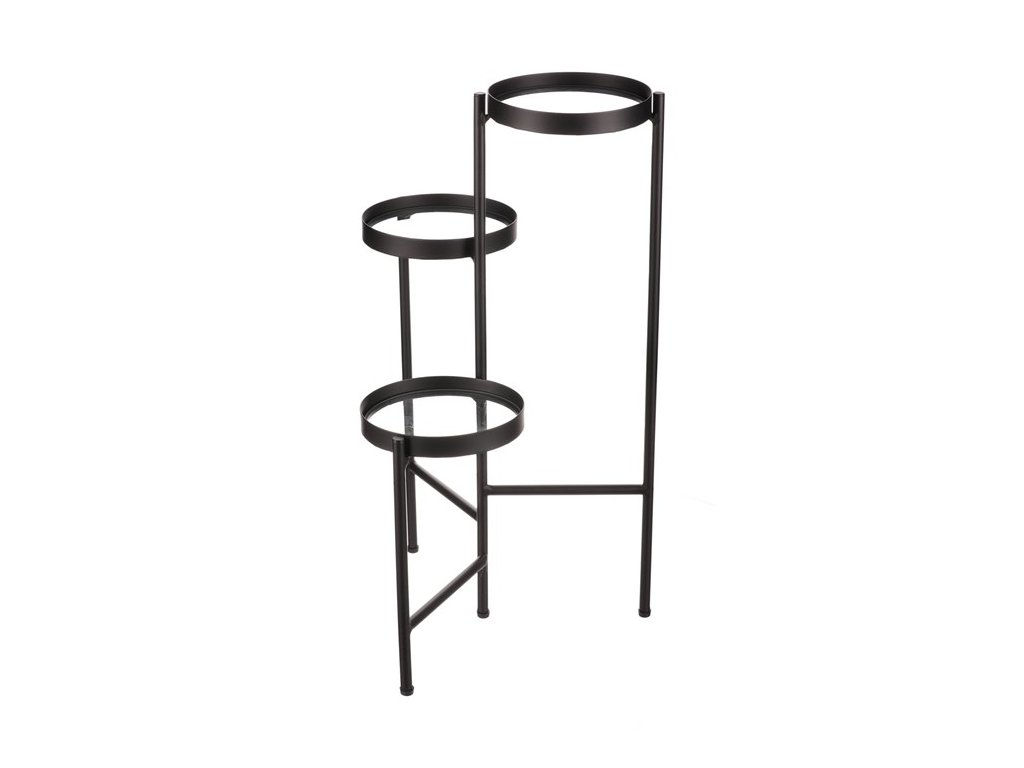 Bytový doplněk v podobě kovového stojanu v černé barvě bude skvělým pomocníkem pro prostorové umístění květin. Skládá se ze tří nosných ploch s podlážkami ze skleněných desek, které jsou v různých výškách. Svým provedením je uzpůsoben i pro umístění v rohu místnosti. Můžete tak krásně využít této mnohdy problematické plochy a terasovitě nechat vyniknout krásu rostlin na něm umístěných.Doplňkové parametry