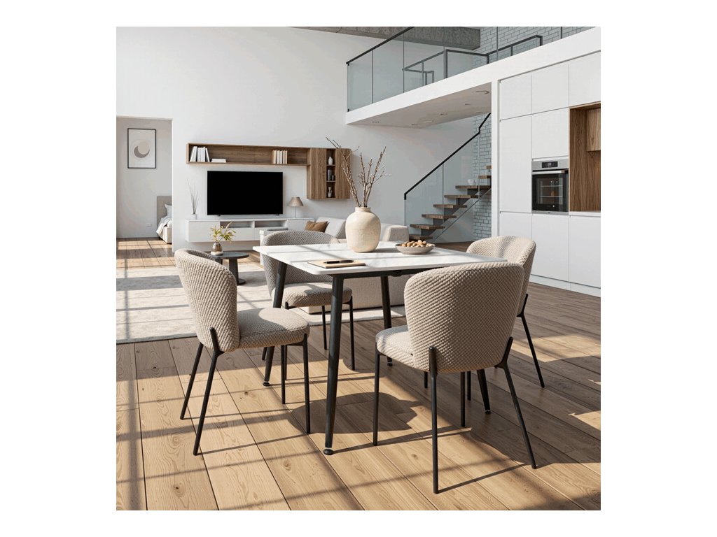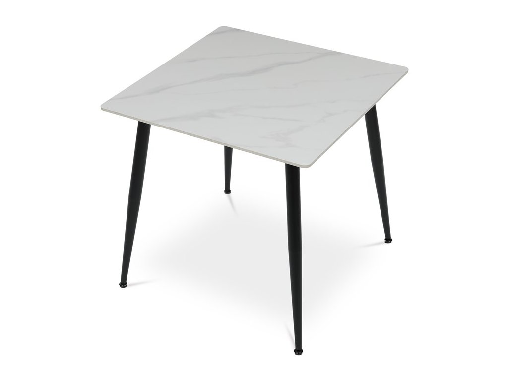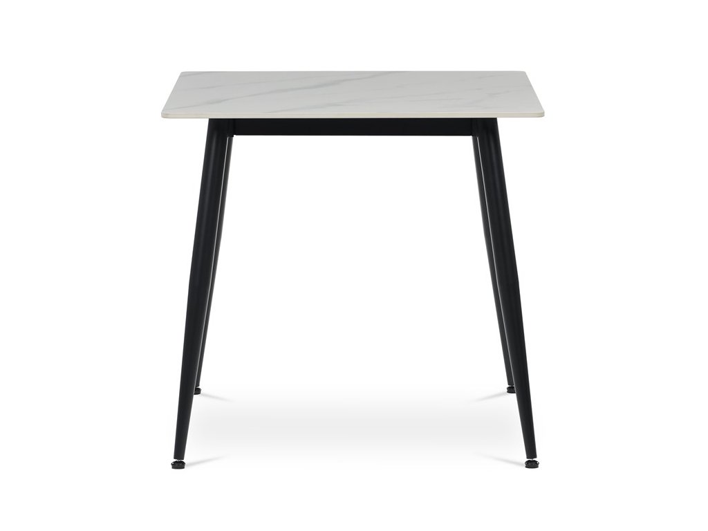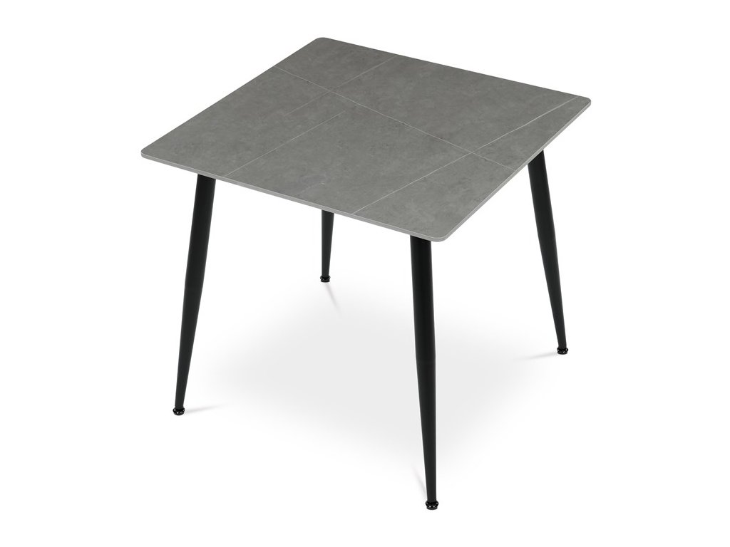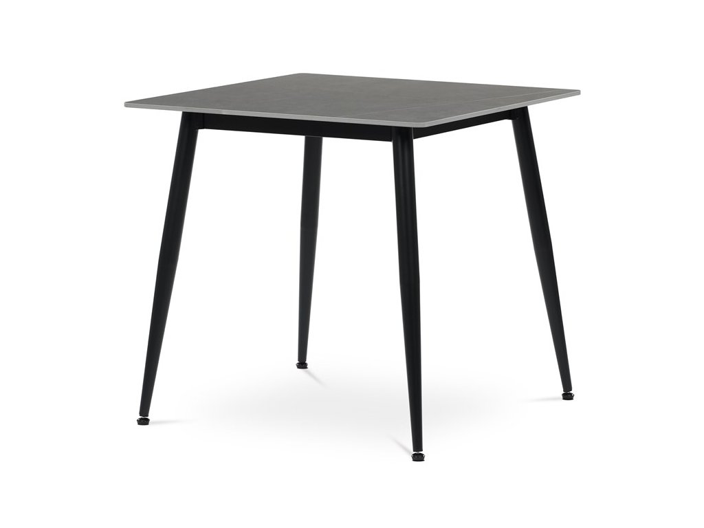 Jídelní stůl HT-398M – keramická deska, mramorový dekor, černé nohyElegantní jídelní stůl značky Autronic v moderním stylu. Čtvercová šedá keramická deska s mramorovým dekorem působí luxusně a je velmi snadná na údržbu. Stabilní černé kovové nohy vytvářejí výrazný kontrast a dodávají stolu osobitý vzhled. Díky kompaktním rozměrům je ideální do menších prostor – kuchyní nebo jídelních koutů.