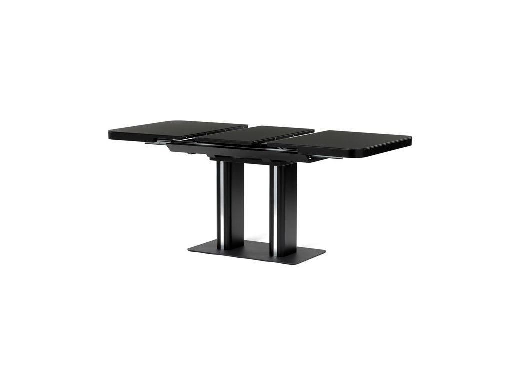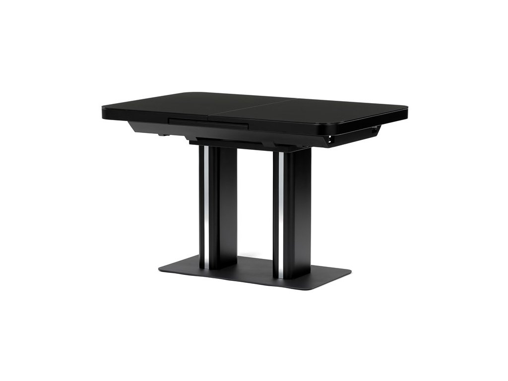 Rozkládací jídelní stůl značky Autronic v elegantním černém provedení je skvělou volbou do moderních interiérů. Obdélníková deska z tvrzeného skla je nejen stylová, ale také velmi odolná a snadná na údržbu. Díky rozkládacímu mechanismu lze šířku stolu snadno přizpůsobit aktuálním potřebám – ideální pro každodenní použití i větší rodinná setkání. Stabilní konstrukce zajišťuje vysokou pevnost a dlouhou životnost.Specifikace: