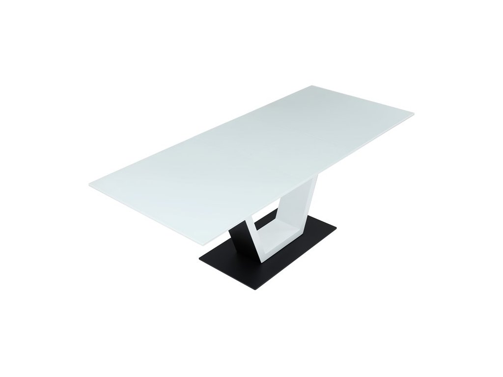 Luxusní rozkládací jídelní stůl značky Autronic v elegantní bílé barvě je ideální volbou pro moderní interiéry. Obdélníková deska z tvrzeného skla nabízí odolný a snadno udržovatelný povrch. Jedinečný design s centrální podnoží ve tvaru „V“ na stabilní základně dodává stolu výrazný charakter. Díky rozkládacímu mechanismu lze šířku stolu snadno přizpůsobit aktuálním potřebám, což z něj činí perfektní řešení pro rodinné večeře i společenské události. Skvělá kombinace stylu a praktičnosti.Doplňkové parametry