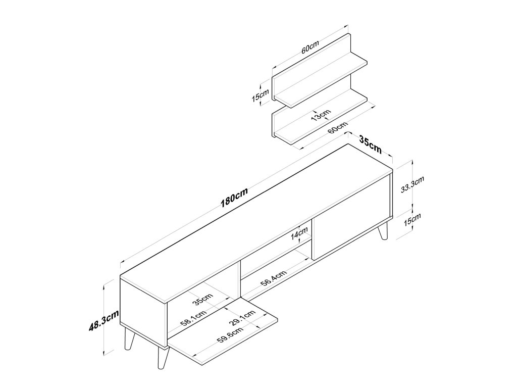 ✔ TV stolek: 180 × 35 × 48,6 cm