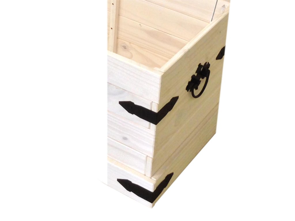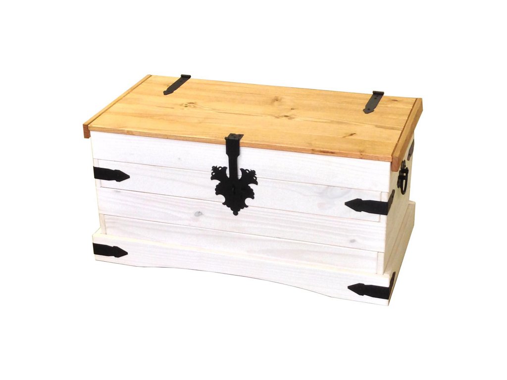 Materiál masiv borovice voskovaná v bílém odstínu, horní deska masiv borovice voskovaná v medovém odstínukovové ozdobné úchytky a petlice
