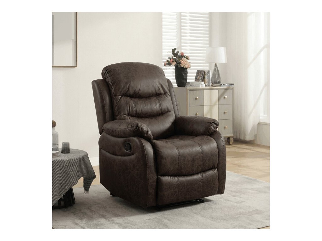 Elegantní, extra polstrované a velmi pohodlné polohovatelné TV a relaxační křeslo z kolekce Comfort Artium. Potah je z hnědé látky v dekoru vintage kůže. Kostra je z masivního dřeva. Mechanická konstrukce je kovová s kvalitním práškovým nástřikem v černé barvě. Výplň z PU pěny 28 kg/m2 na sedacích plochách, 22 kg/m2 na ostatních plochách. V místech sedáku jsou vlnovcové pružiny a elastické popruhy pro zpevnění. Funkce – polohovatelné ve dvou pozicích s aretací. Nosnost křesla je 130 kg.Je přímo ztělesněním pohody a relaxace. Hodí se do jakkoliv stylově zařízeného interiéru a v každém bude působit jako skvělý a hlavně pohodlný solitér.