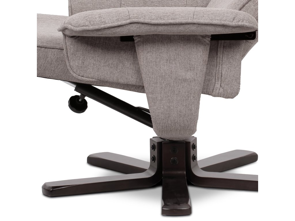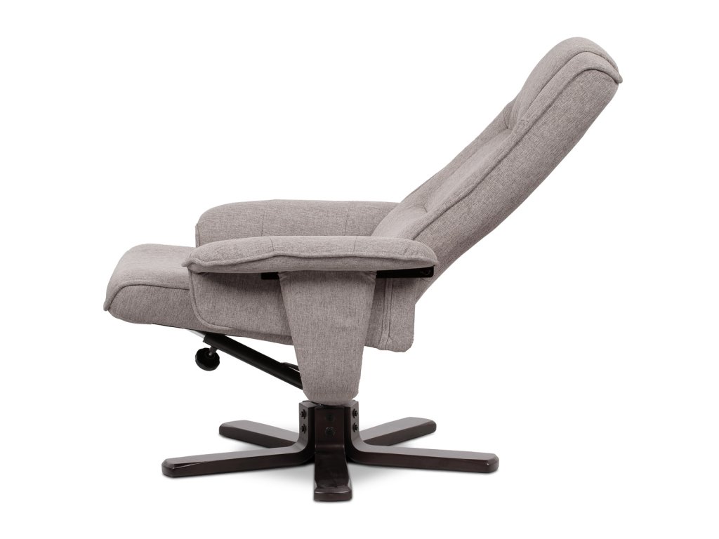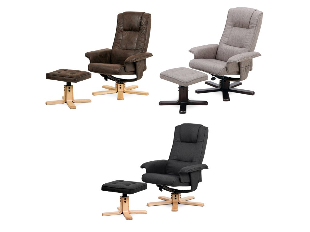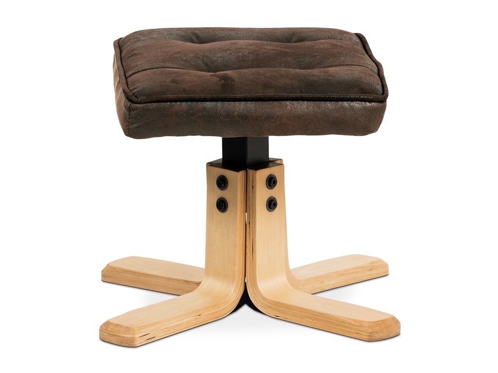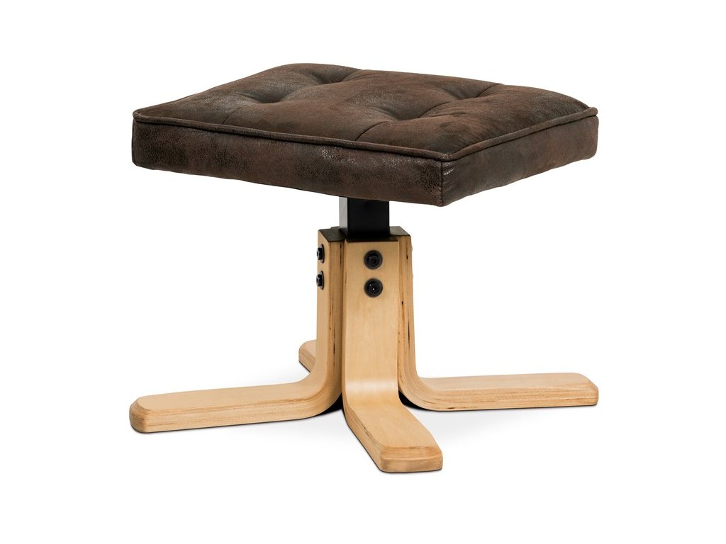 Pohodlné relaxační křeslo pro všechny milovníky kvalitního odpočinku. Křeslo s příjemný polstrováním a stylovým prošitím, je čalouněno jemnou látkou hnědé barvy imitující broušenou kůži. V rámci maximálního komfortu je křeslo polohovatelné, dle potřeby je ale možné polohování zafixovat velkým aretačním šroubem umístěným pod sedákem křesla. Díky tvrzenému kovovému rámu černé barvy, který je pevně uchycen na kovovém pístu je křeslo otočné. Dokonalou stabilitu zajišťuje hvězdicová podnož z masivního dřeva v přírodním odstínu. Ruce si můžete pohodlně opřít o příjemné područky, které mají na vnější straně kapsičky třeba na dálkové ovládání televize.Skvělým doplňkem křesla je i taburet se čtvercovým polstrovaným sedákem čalouněným hnědou látkou imitující broušenou kůž a se stylovým prošitími, který je na podnoži z masivního dřeva v přírodním odstínu.