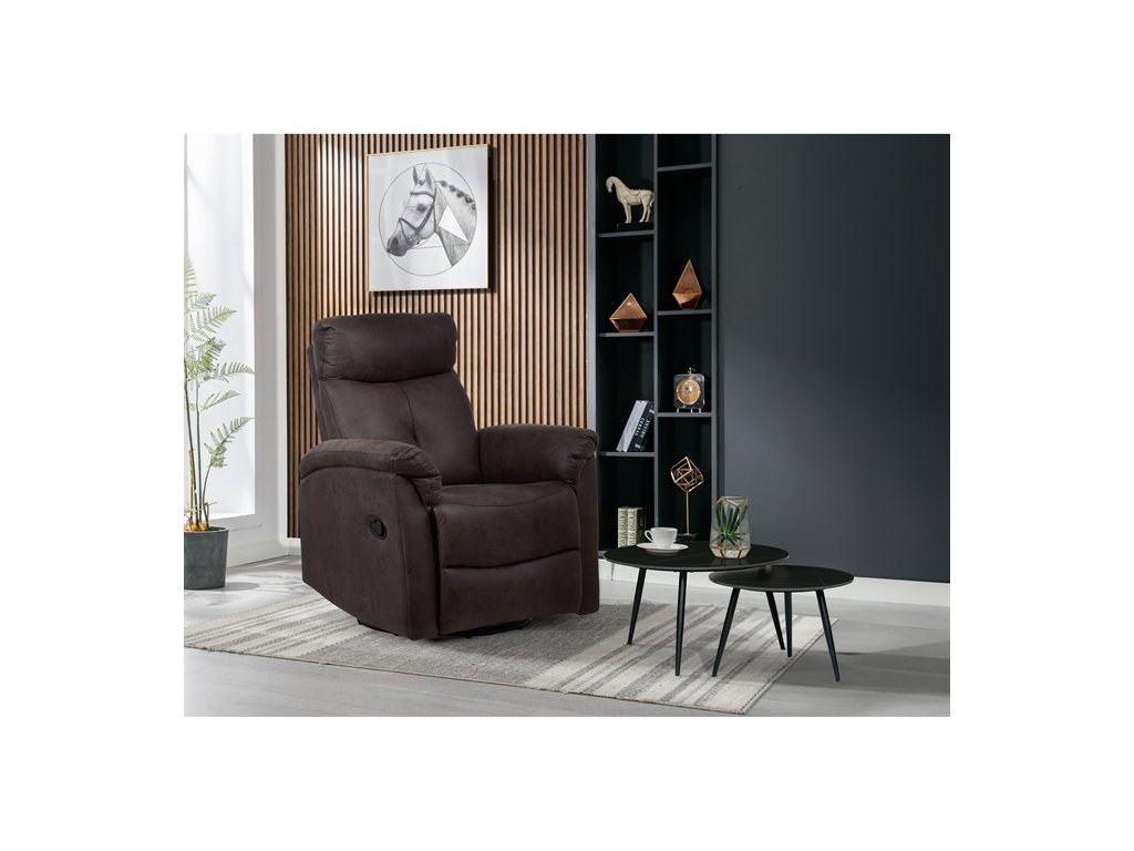 Elegantní a velmi pohodlné polohovatelné TV křeslo z kolekce Comfort Artium. Potah je z hnědé látky v dekoru kůže. Kostra z masivního dřeva, boky jsou z překližky. Mechanická konstrukce je kovová, černě lakovaná. Výplň z PU pěny 28D na sedacích plochách, 22D na bocích a 3 vlnovcových pružin v místě sedáku. Křeslo má řadu skvělých a nadstandardních funkcí - polohování ve dvou pozicích s aretací, ale je také otočné o 360°a navíc ještě i houpací. TOP relaxace ve všech polohách. Nosnost křesla je 130 kg.Doplňkové parametry
