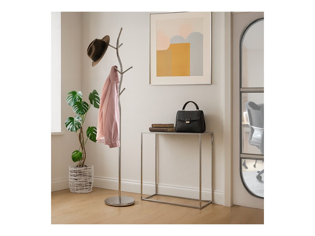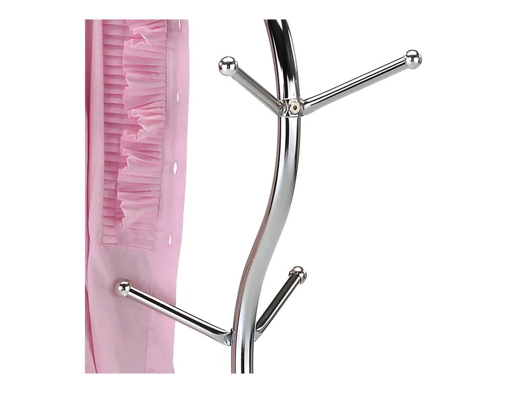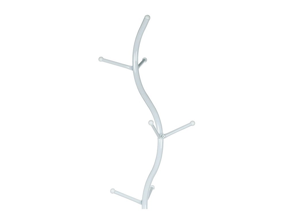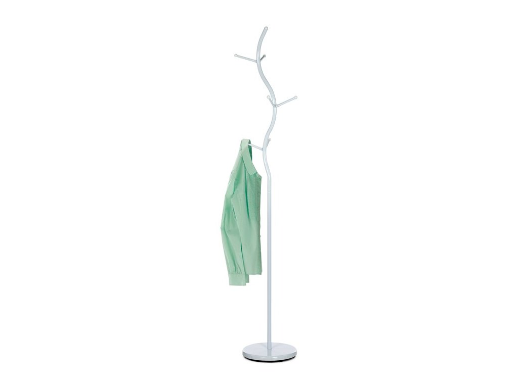 Kovový, volně stojící věšák v minimalistickém designu. Tvarem připomíná stylizovanou větev stromu. Stabilní a lehká konstrukce je z kovových trubek v bílém matném laku je zakončena kovovou podestou se zátěží. Závěsné háčky jsou ve třech výškových úrovních a jsou zakončeny kulatými plastovými záslepkami v bílé barvě. Dodáván je v demontovaném stavu, celková nosnost je 10 kg rovnoměrně rozprostřené zátěže. Díky své hmotnosti a provedení je lehce přenosný.Jedná se originální doplněk interiéru, v každém si najde zasloužené a funkční místo a uplatnění.