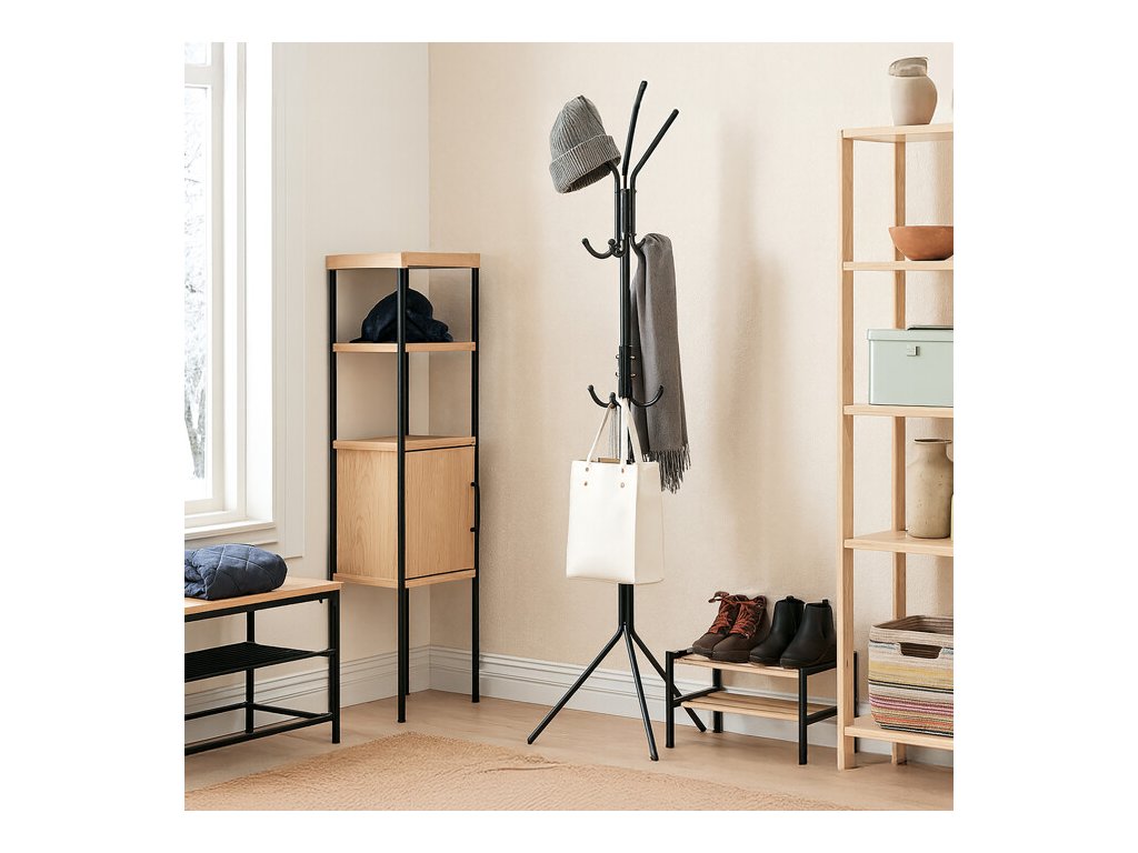 Stojanový věšák je vyroben z kovu. Vrchni vrstav opatřena práškovou černou barvou.Doplňkové parametry